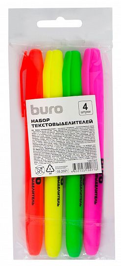 Цвет: ассорти Количество в упаковке, шт: 4 Тип чернил: быстросохнущий Форма наконечника: скошенный Вид маркера: Набор текстовых маркеров Количество пишущих сторон: односторонний Мин. партия и варианты упаковок: 1 / 24 / 288 -