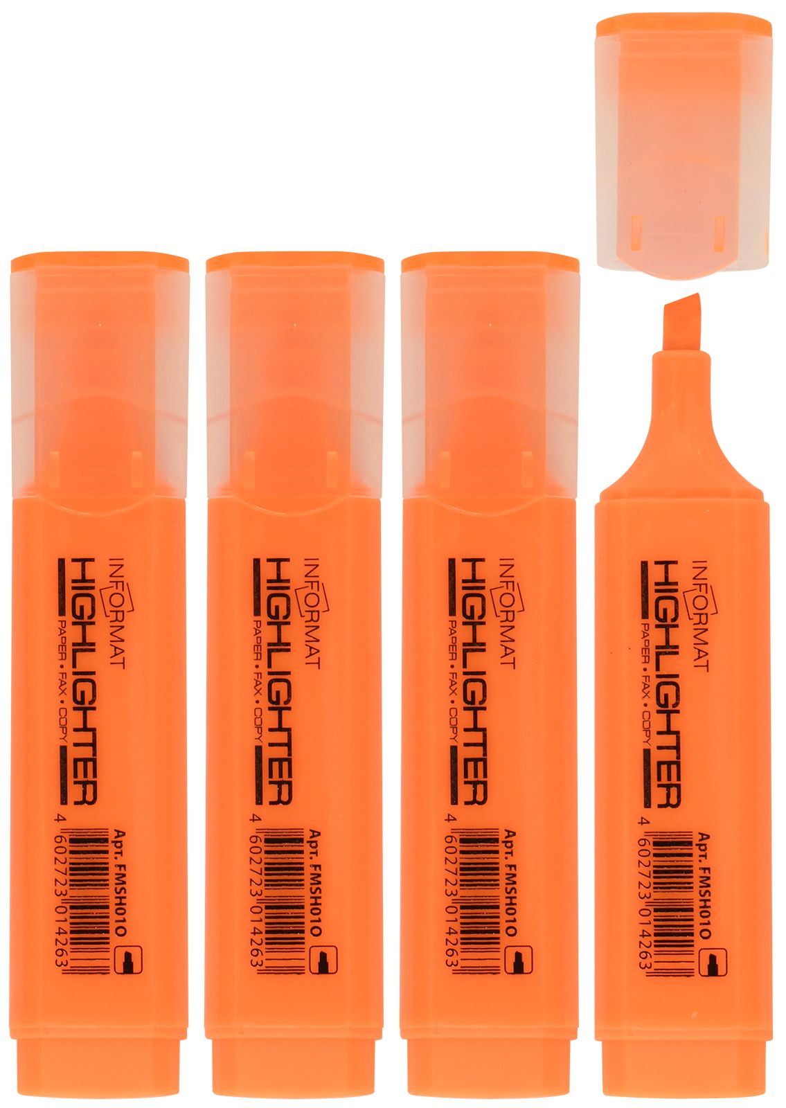 Цвет: оранжевый Количество в упаковке, шт: 1 Тип чернил: быстросохнущий Форма наконечника: скошенный Вид маркера: Маркер текстовый Количество пишущих сторон: односторонний Мин. партия и варианты упаковок: 1 / 10 / 100 / 600 -