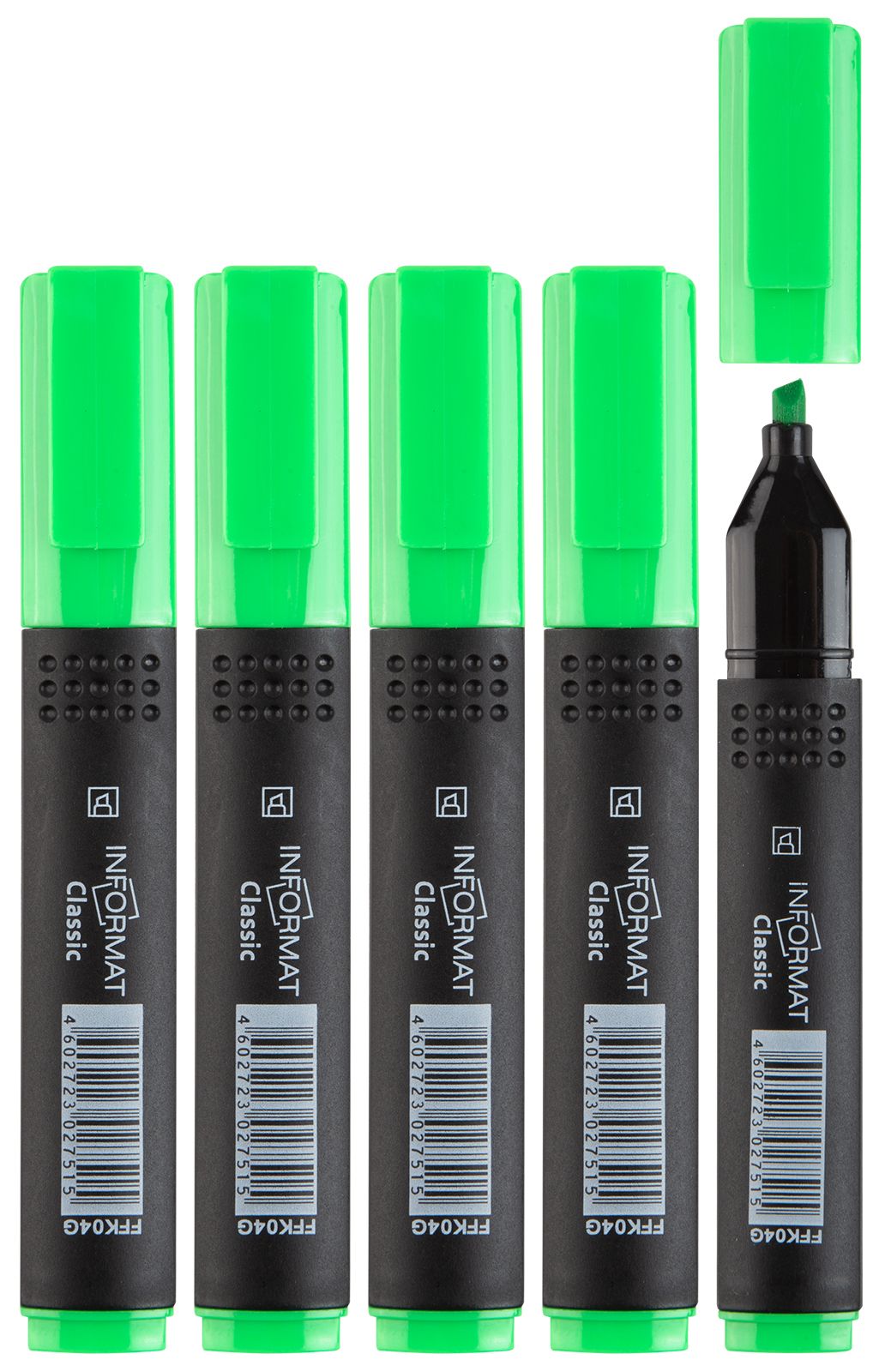 Цвет: зеленый Количество в упаковке, шт: 1 Тип чернил: быстросохнущий Форма наконечника: скошенный Вид маркера: Маркер текстовый Количество пишущих сторон: односторонний Мин. партия и варианты упаковок: 1 / 12 / 144 / 864 Маркер текстовый INFORMAT CLASSIC 1—5 мм, зеленый, скошенный