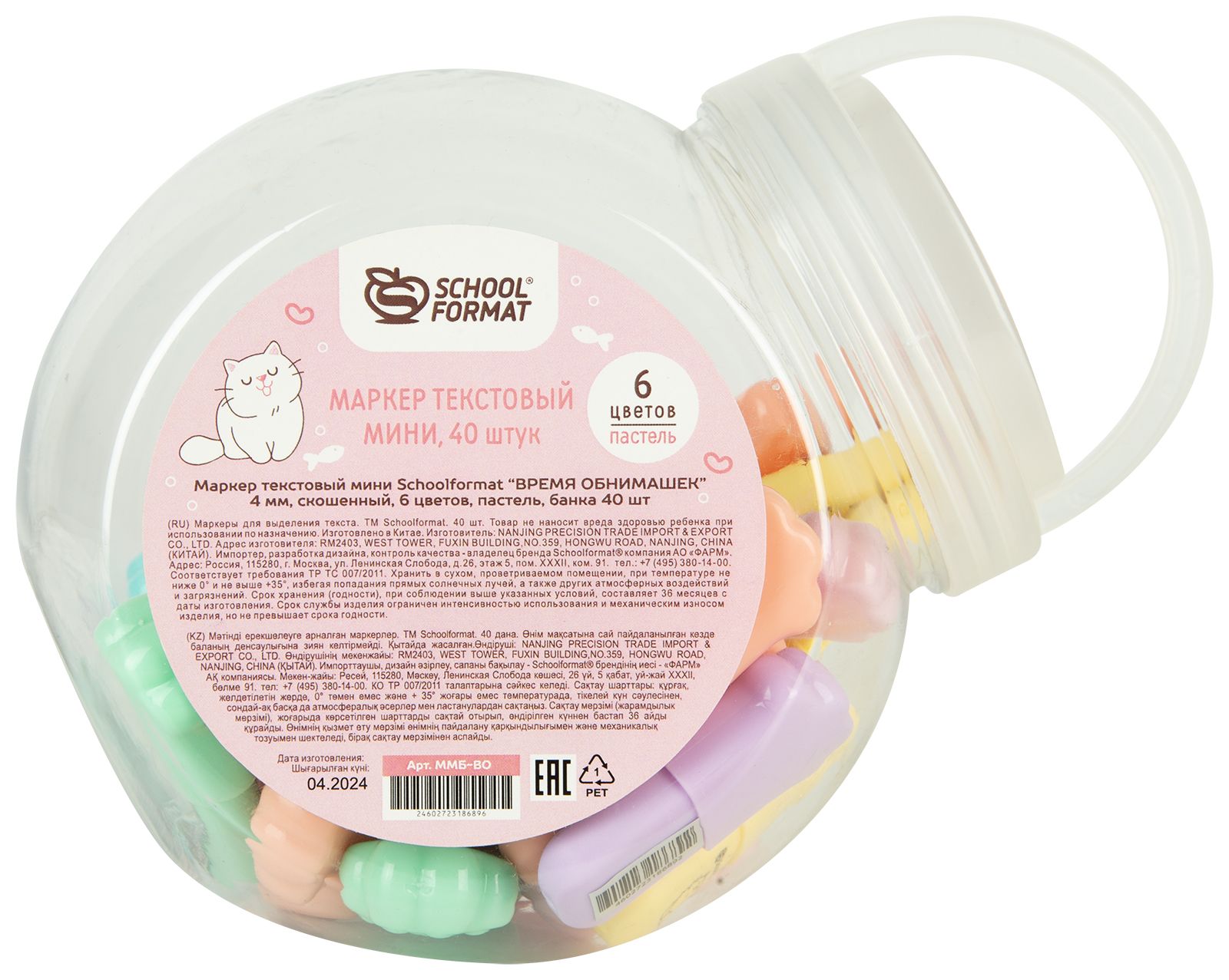 Цвет: ассорти Количество в упаковке, шт: 1 Характеристика цвета: пастель Тип чернил: быстросохнущий Форма наконечника: скошенный Вид маркера: Маркер текстовый мини Мин. партия и варианты упаковок: 1 / 40 / 480 / 960 Маркер текстовый мини Schoolformat ВРЕМЯ ОБНИМАШЕК 1-4 мм ассорти пастель скошенный принт на корпусе 1 шт