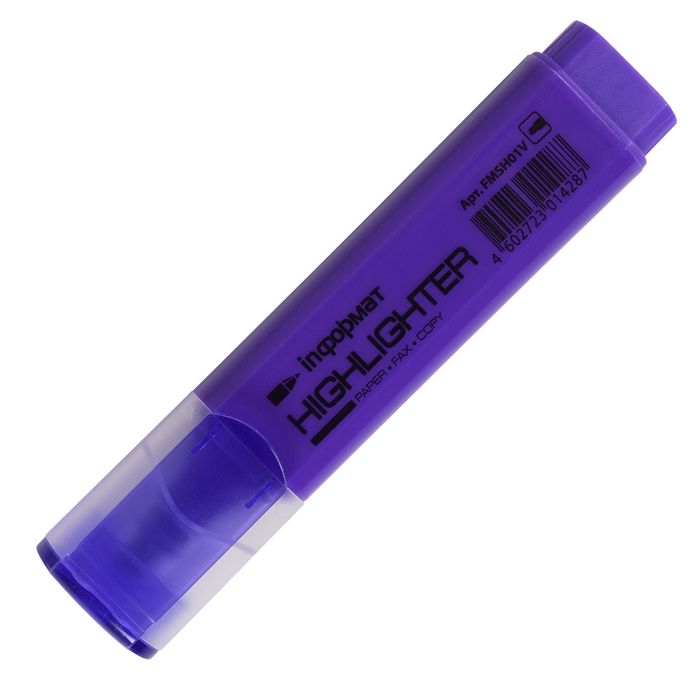 Цвет: фиолетовый Количество в упаковке, шт: 1 Тип чернил: быстросохнущий Форма наконечника: скошенный Вид маркера: Маркер текстовый Количество пишущих сторон: односторонний Мин. партия и варианты упаковок: 1 / 12 / 144 / 864 -