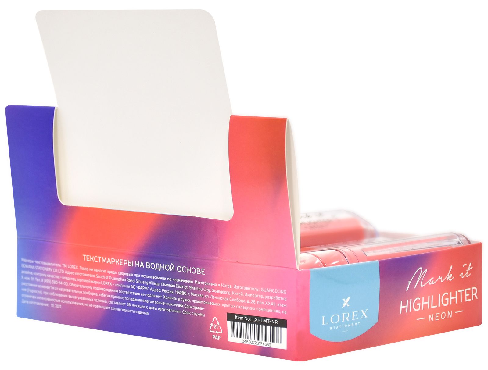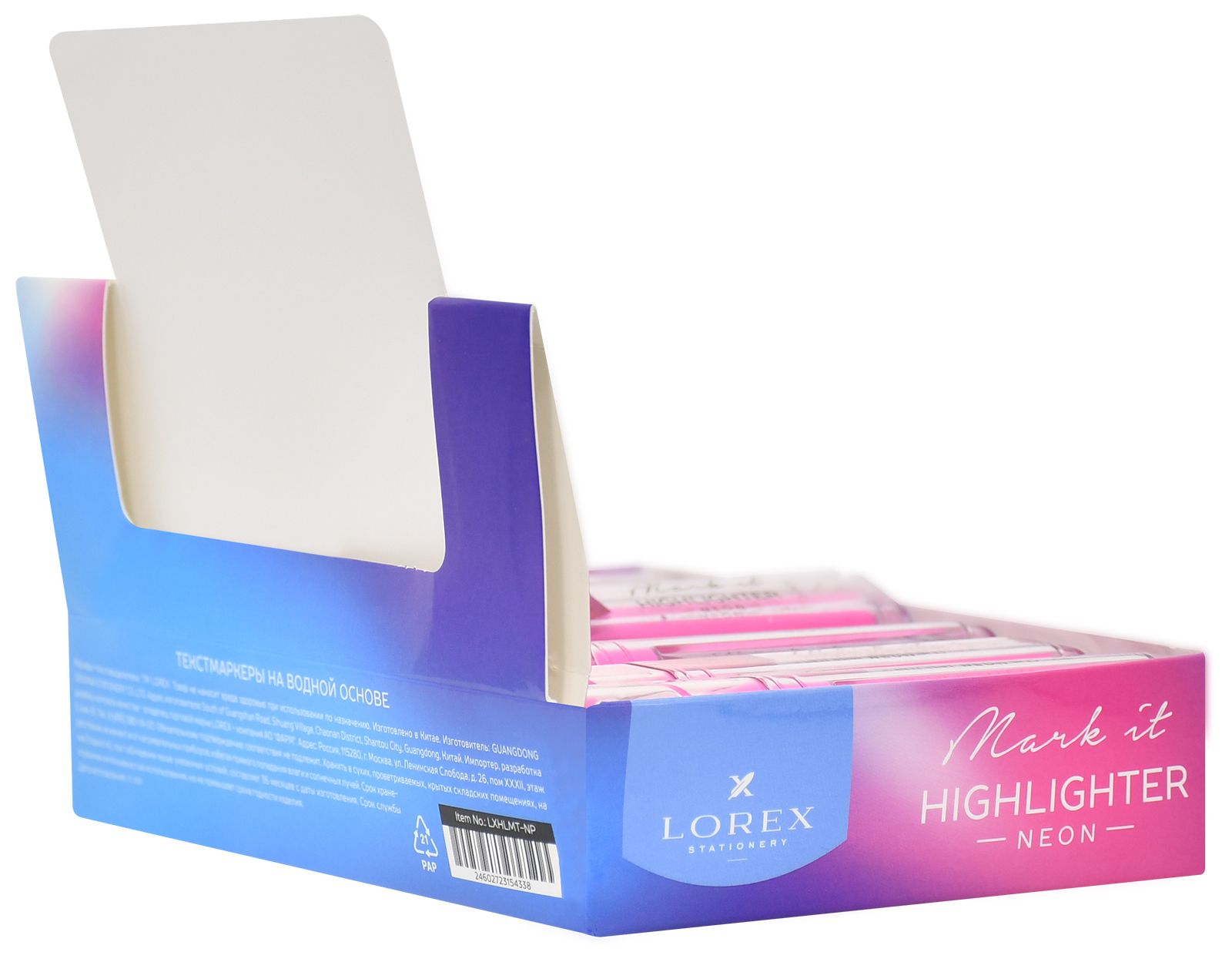 Цвет: ассорти Количество в упаковке, шт: 1 Характеристика цвета: неон Тип чернил: быстросохнущий Форма наконечника: скошенный Вид маркера: Маркер текстовый Мин. партия и варианты упаковок: 1 / 24 / 576 -