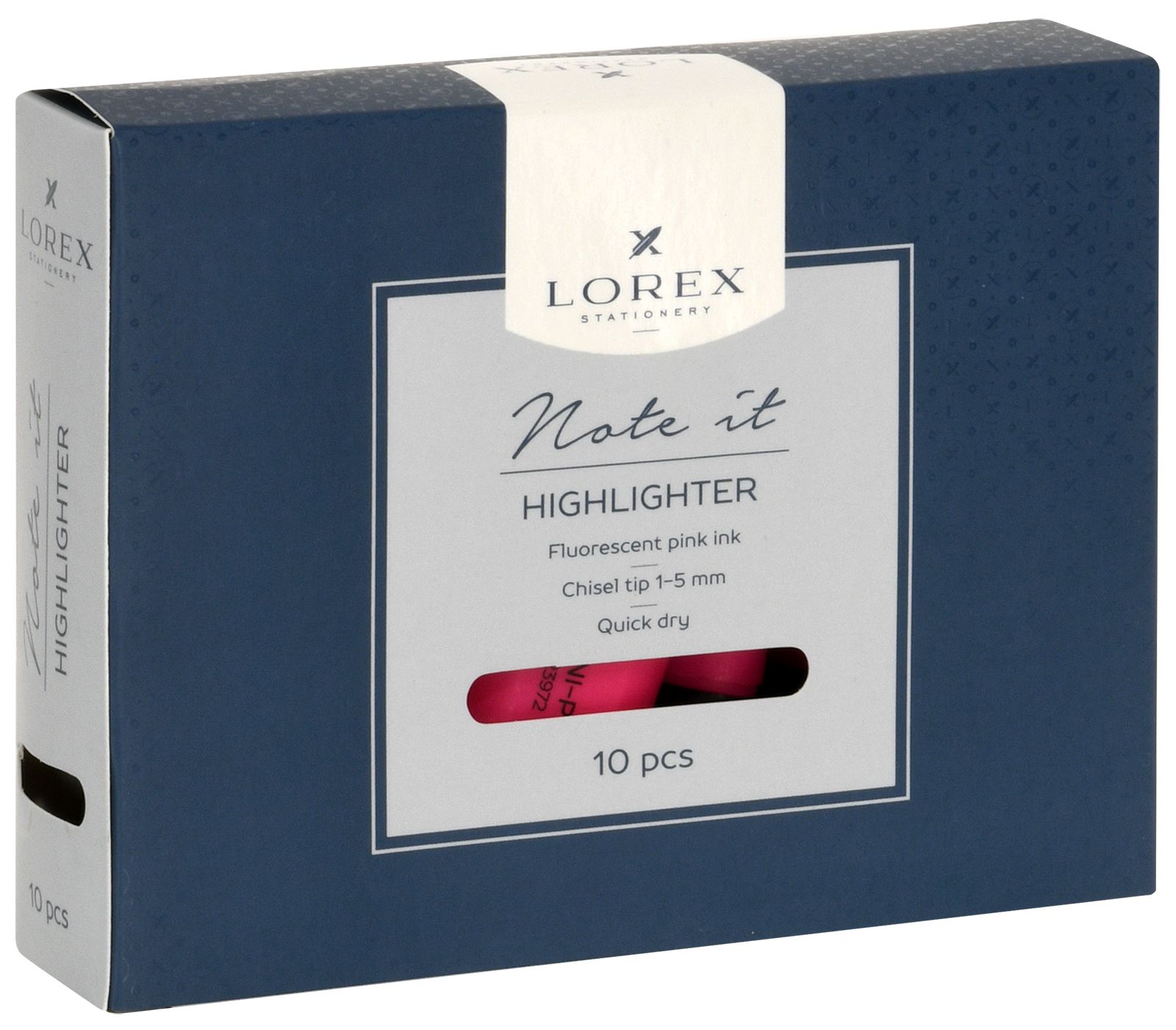 Цвет: розовый Количество в упаковке, шт: 1 Тип чернил: быстросохнущий Форма наконечника: скошенный Вид маркера: Маркер текстовый Количество пишущих сторон: односторонний Мин. партия и варианты упаковок: 1 / 10 / 100 / 600 Маркер текстовый LOREX NOTE IT 1—5 мм, розовый, скошенный