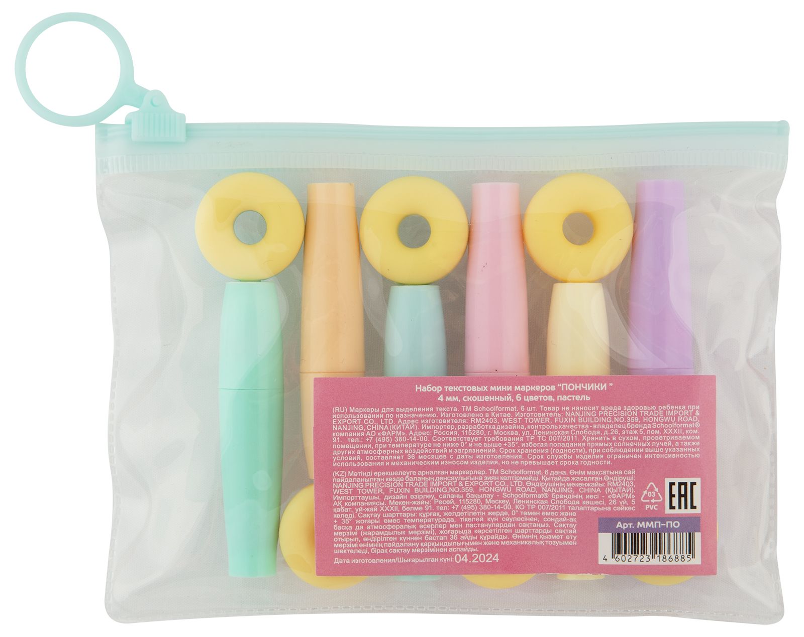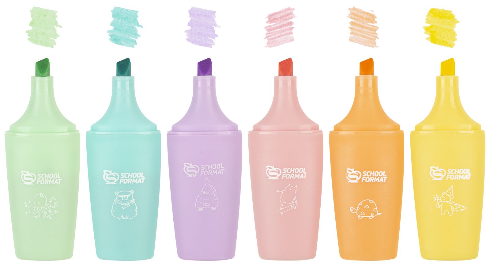 Цвет: ассорти Количество в упаковке, шт: 6 Характеристика цвета: пастель Тип чернил: быстросохнущий Форма наконечника: скошенный Вид маркера: Набор текстовых маркеров Мин. партия и варианты упаковок: 1 / 24 / 144 -