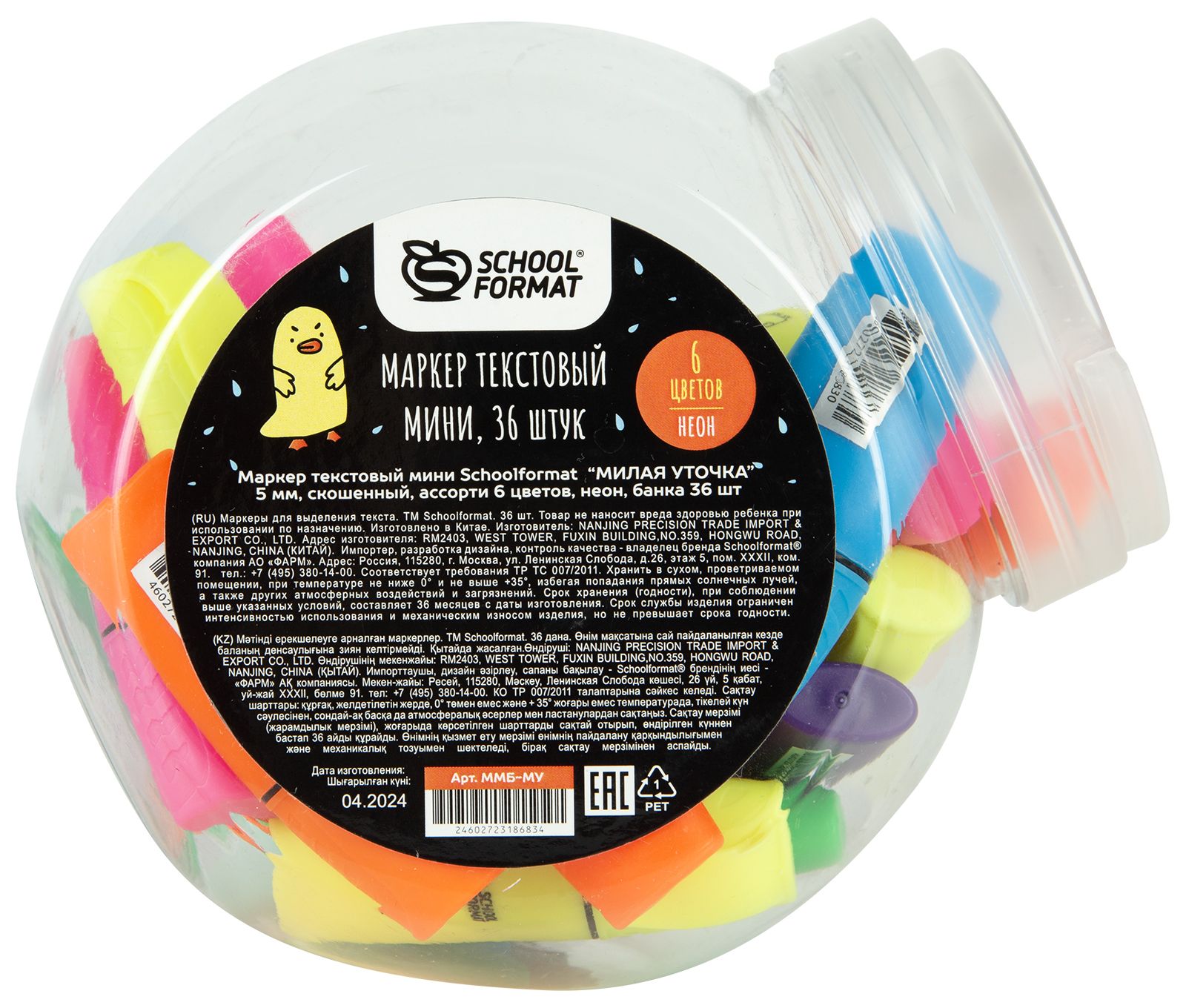 Цвет: ассорти Количество в упаковке, шт: 6 Тип чернил: быстросохнущий Форма наконечника: скошенный Вид маркера: Набор текстовых маркеров мини Количество пишущих сторон: односторонний Мин. партия и варианты упаковок: 1 / 40 / 240 Набор текстовых маркеров мини Schoolformat МИЛАЯ УТОЧКА 1-5 мм ассорти скошенный принт на корпусе 6 шт