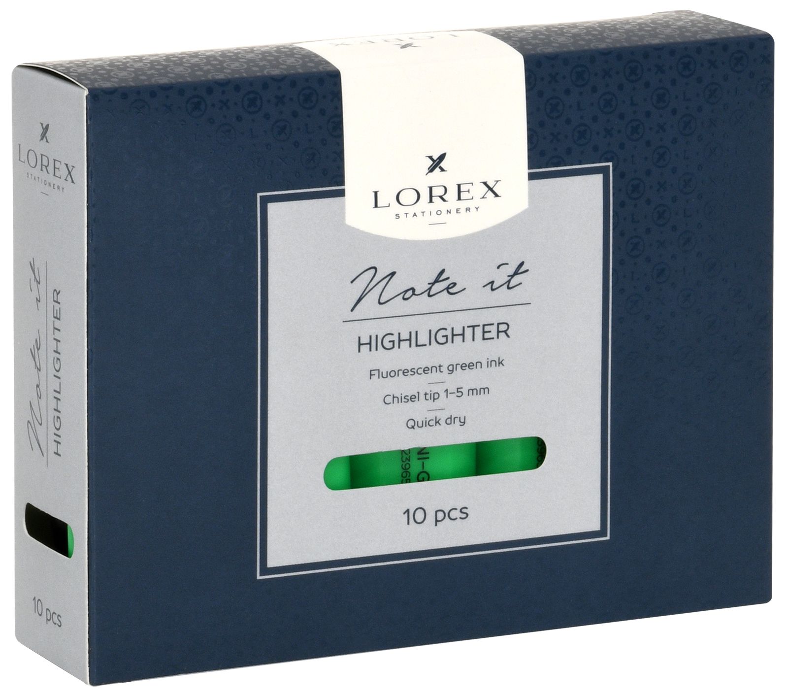 Цвет: зеленый Количество в упаковке, шт: 1 Тип чернил: быстросохнущий Форма наконечника: скошенный Вид маркера: Маркер текстовый Количество пишущих сторон: односторонний Мин. партия и варианты упаковок: 1 / 10 / 100 / 600 Маркер текстовый LOREX NOTE IT 1—5 мм, зеленый, скошенный