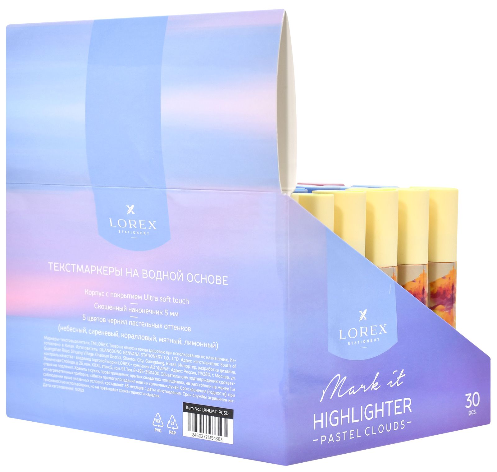 Цвет: ассорти Количество в упаковке, шт: 6 Характеристика цвета: пастель Тип чернил: быстросохнущий Форма наконечника: скошенный Вид маркера: Набор текстовых маркеров Мин. партия и варианты упаковок: 1 / 12 / 144 Набор текстовых маркеров LOREX Mark it CREATE 1-4 мм ассорти пастельные, принт на прозрачном корпусе 6 шт