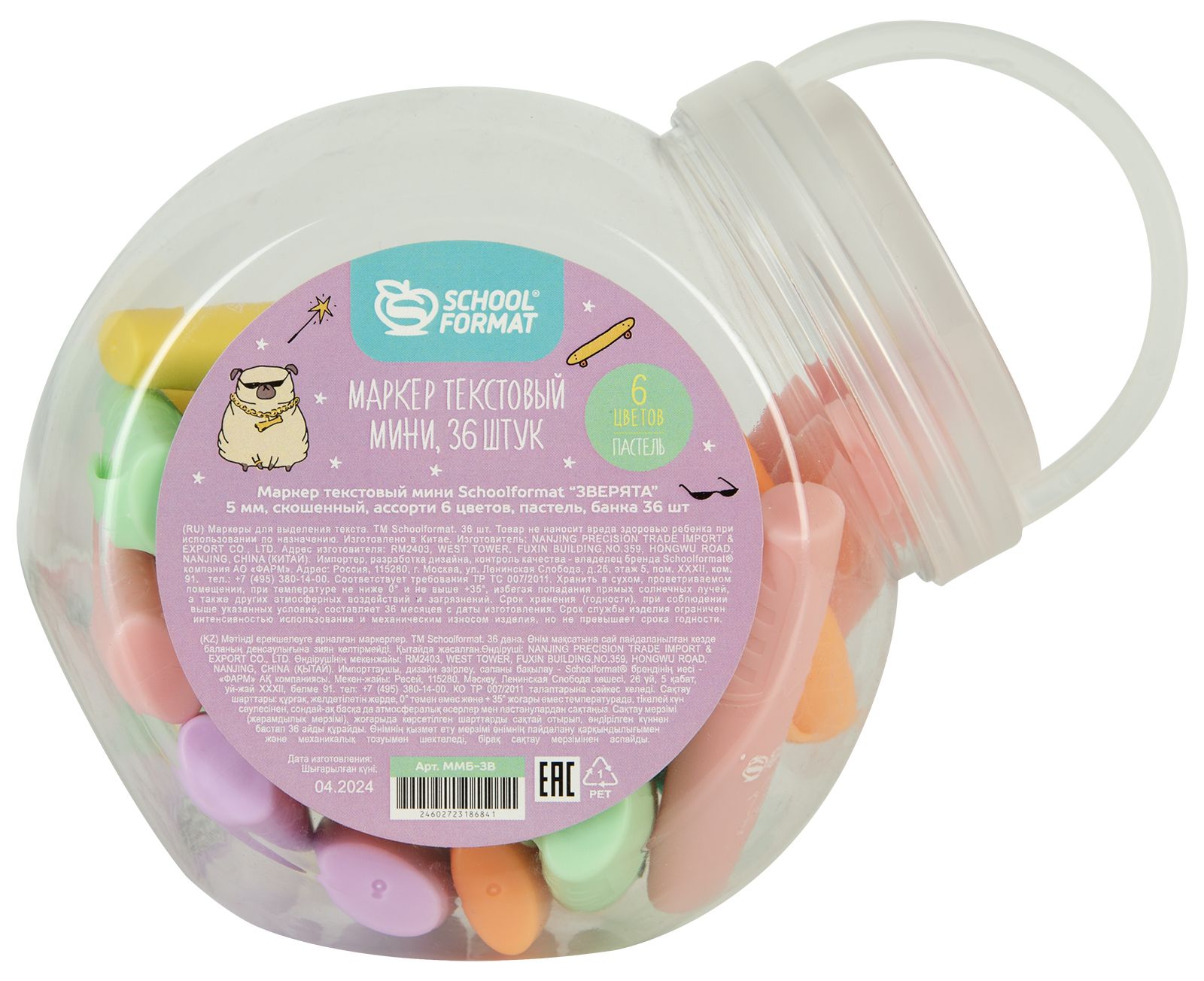 Цвет: ассорти Количество в упаковке, шт: 1 Характеристика цвета: пастель Тип чернил: быстросохнущий Форма наконечника: скошенный Вид маркера: Маркер текстовый мини Мин. партия и варианты упаковок: 1 / 36 / 432 / 864 Маркер текстовый мини Schoolformat ЗВЕРЯТА 1-5 мм ассорти пастель скошенный принт на корпусе 1 шт