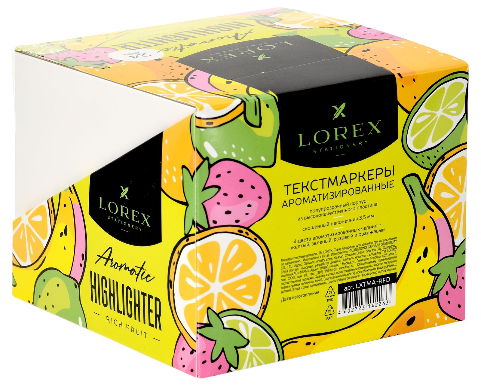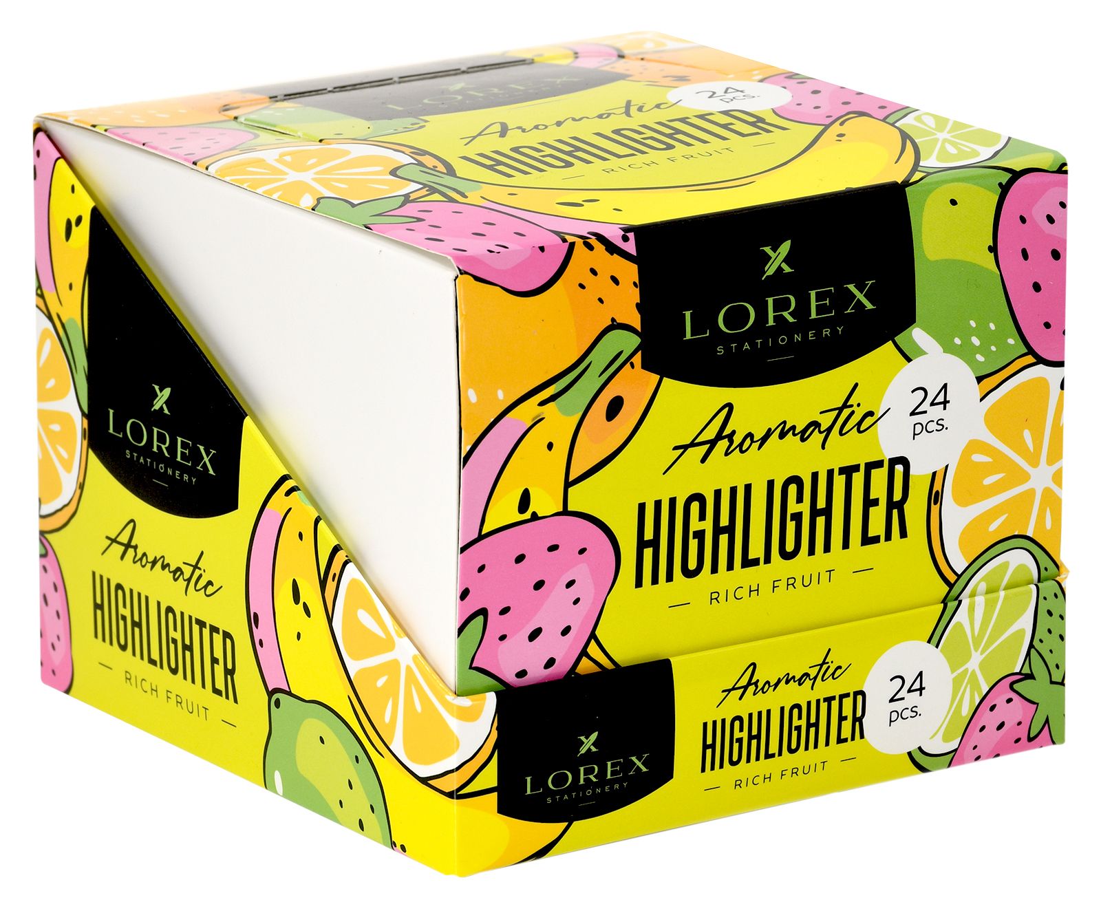 Цвет: желтый Количество в упаковке, шт: 1 Характеристика цвета: неон Тип чернил: быстросохнущий Форма наконечника: скошенный Вид маркера: Маркер текстовый Мин. партия и варианты упаковок: 1 / 12 / 72 / 864 Маркер текстовый LOREX Aromatic RICH FRUIT.NEON 1—3,5 мм, желтый, скошенный