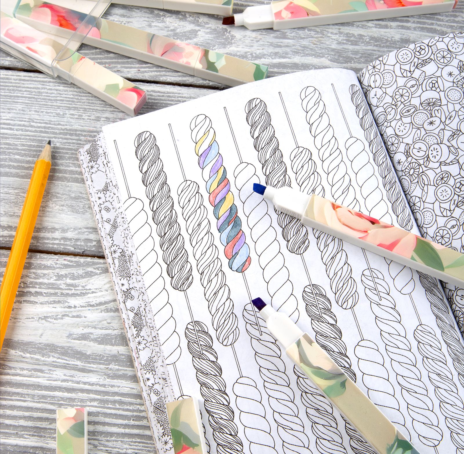 - Палитра оттенков включает желтый, салатный, розовый, голубой, оранжевый и другие яркие цвета.