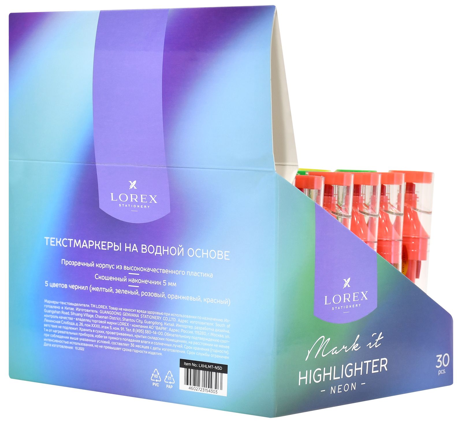 Цвет: ассорти Количество в упаковке, шт: 30 Характеристика цвета: неон Тип чернил: быстросохнущий Форма наконечника: скошенный Вид маркера: Маркер текстовый Мин. партия и варианты упаковок: 1 / 30 / 540 Маркер текстовый LOREX Mark it SUPERIOR 1-5 мм ассорти неон, скошенный
