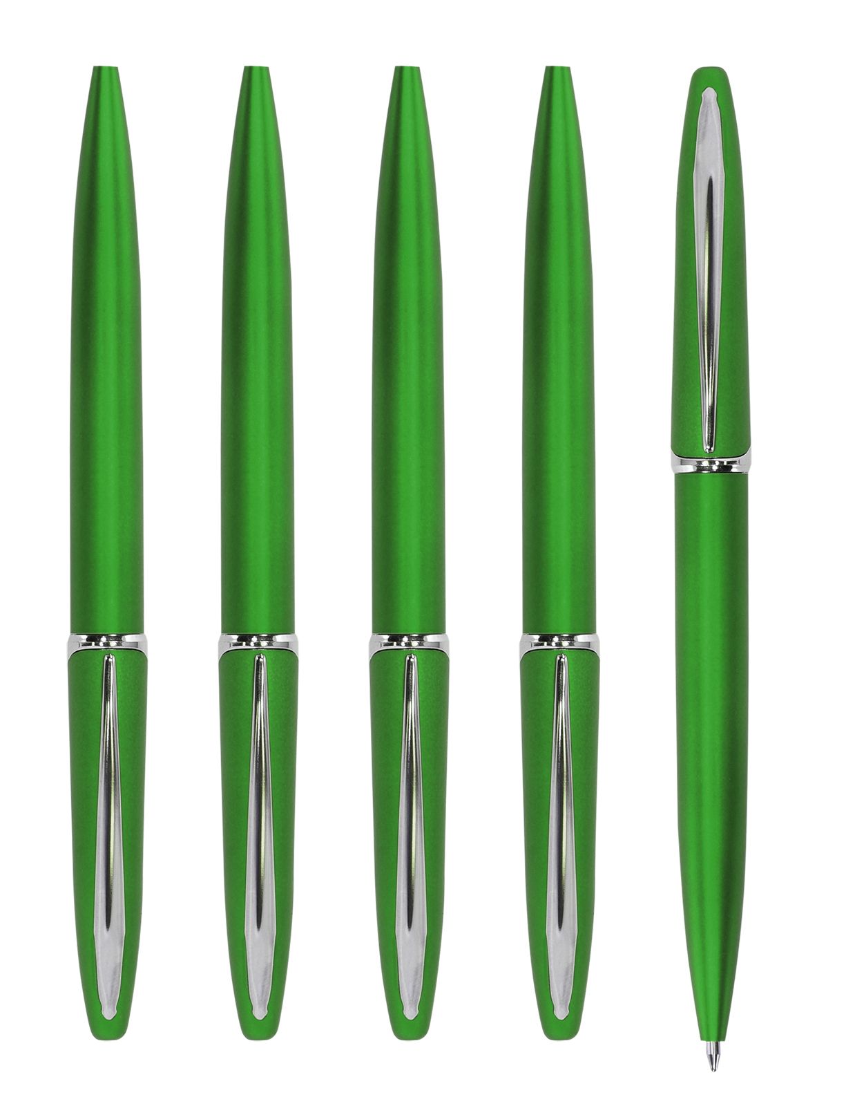 Цвет чернил: синий Механизм автоматической ручки: поворотный Цвет корпуса: зеленый корпус Толщина линии письма, мм: 0,35 Наличие резинового грипа: Нет Упаковка: картонная коробка Мин. партия и варианты упаковок: 1 / 50 / 1000 -
