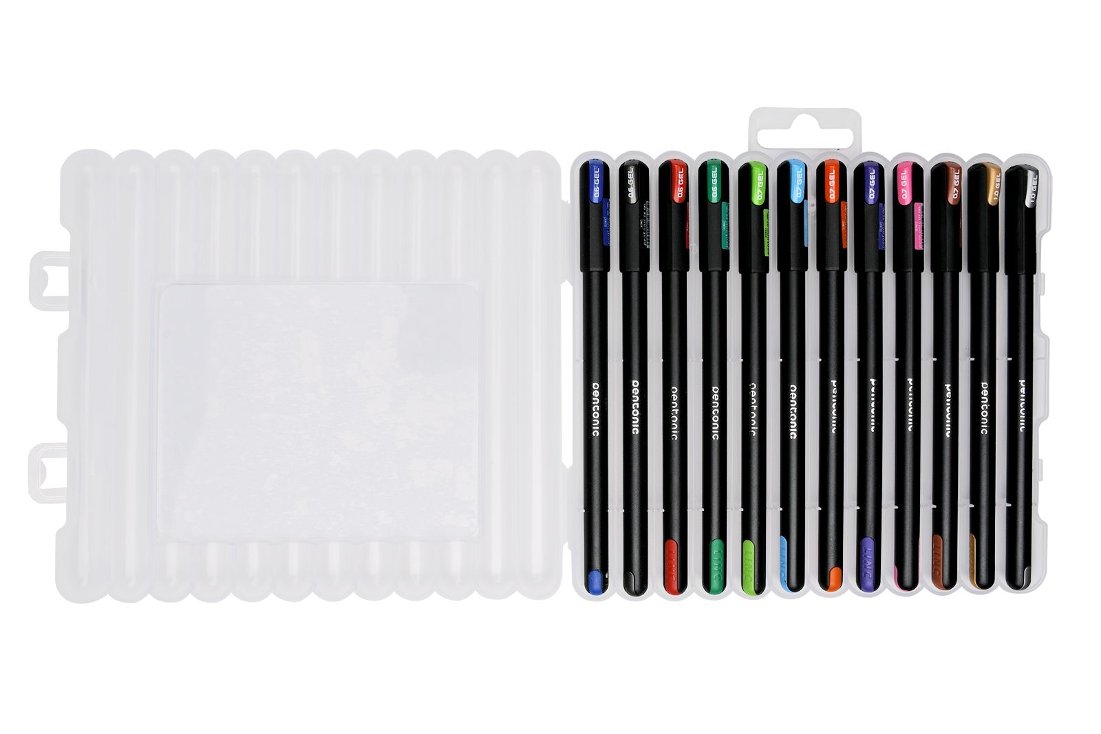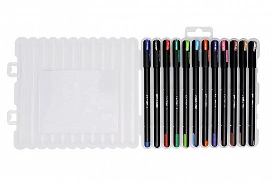 - В наборе 12 цветных гелевых ручек в элегантном пластиковом кейсе