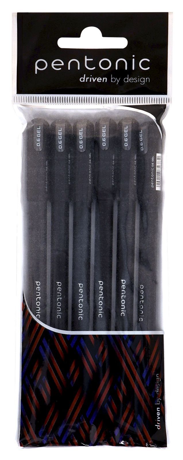 Гелевые ручки PENTONIC с черными чернилами в наборе 6 штук. Толщина пишущего узла — 0,6 мм.