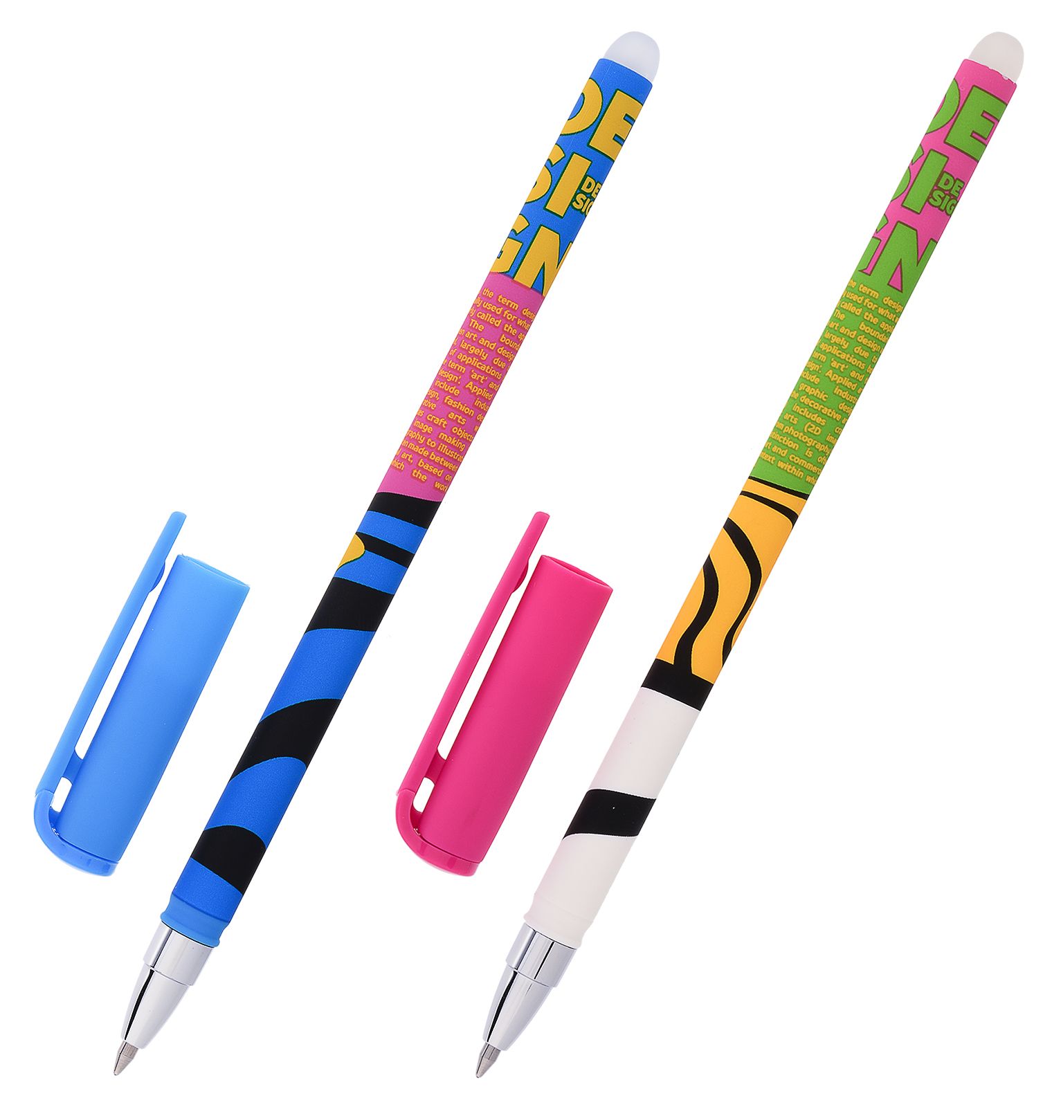 Некоторые гелевые ручки имеют оригинальные чернила с эффектом пастели, металлическими оттенками или блестками. Также в наличии двусторонние изделия «пиши-стирай»: специальная резинка позволяет при необходимости обесцвечивать текст. Специальные насадки на корпусах определенных моделей обеспечат комфортное письмо и снизят напряжение в кистях рук.