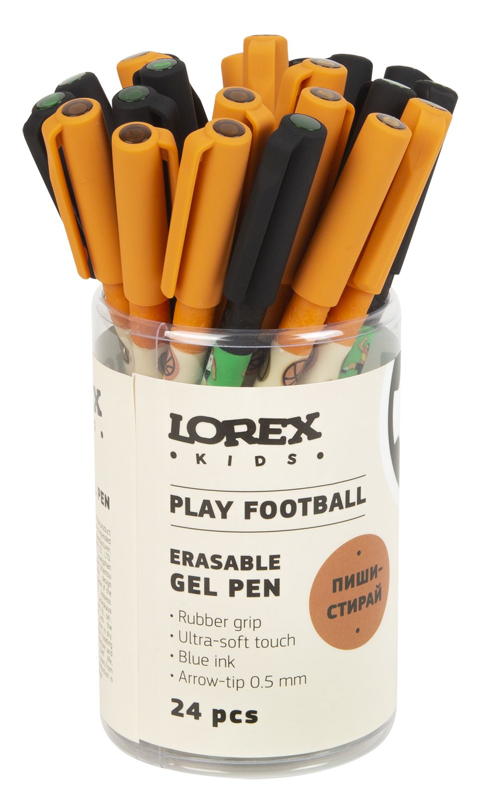 Количество в упаковке, шт: 1 Диаметр, мм: 7 Цвет чернил: синий Вид товара: Ручка гелевая стираемая Толщина линии письма, мм: 0,25 Цвет корпуса: ассорти Мин. партия и варианты упаковок: 1 / 24 / 288 / 1728 Ручка гелевая стираемая LOREX KIDS PLAY FOOTBALL Slim Soft Grip 0,5 мм синяя, покрытие ultra-soft touch, грип