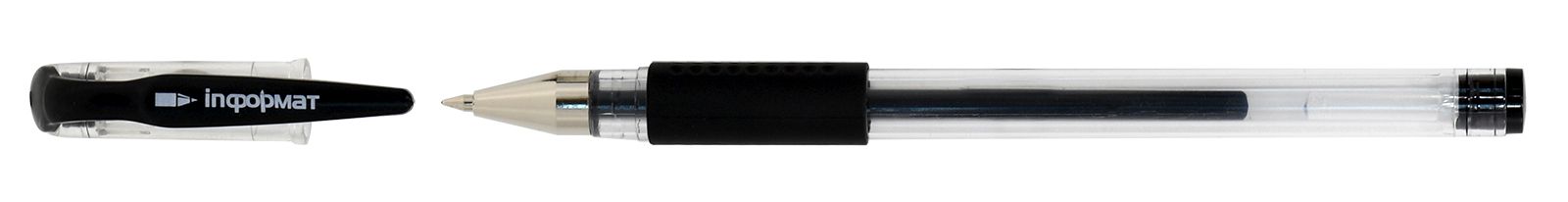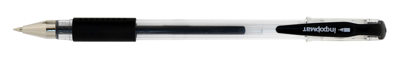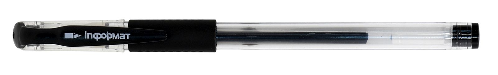Диаметр, мм: 9 Цвет чернил: черный Вид товара: Ручка гелевая Толщина линии письма, мм: 0,35 Цвет корпуса: прозрачный Наличие резинового грипа: Да Мин. партия и варианты упаковок: 1 / 36 / 288 / 1728 Ручка гелевая INFORMAT 0,5 мм черная, круглый корпус, грип