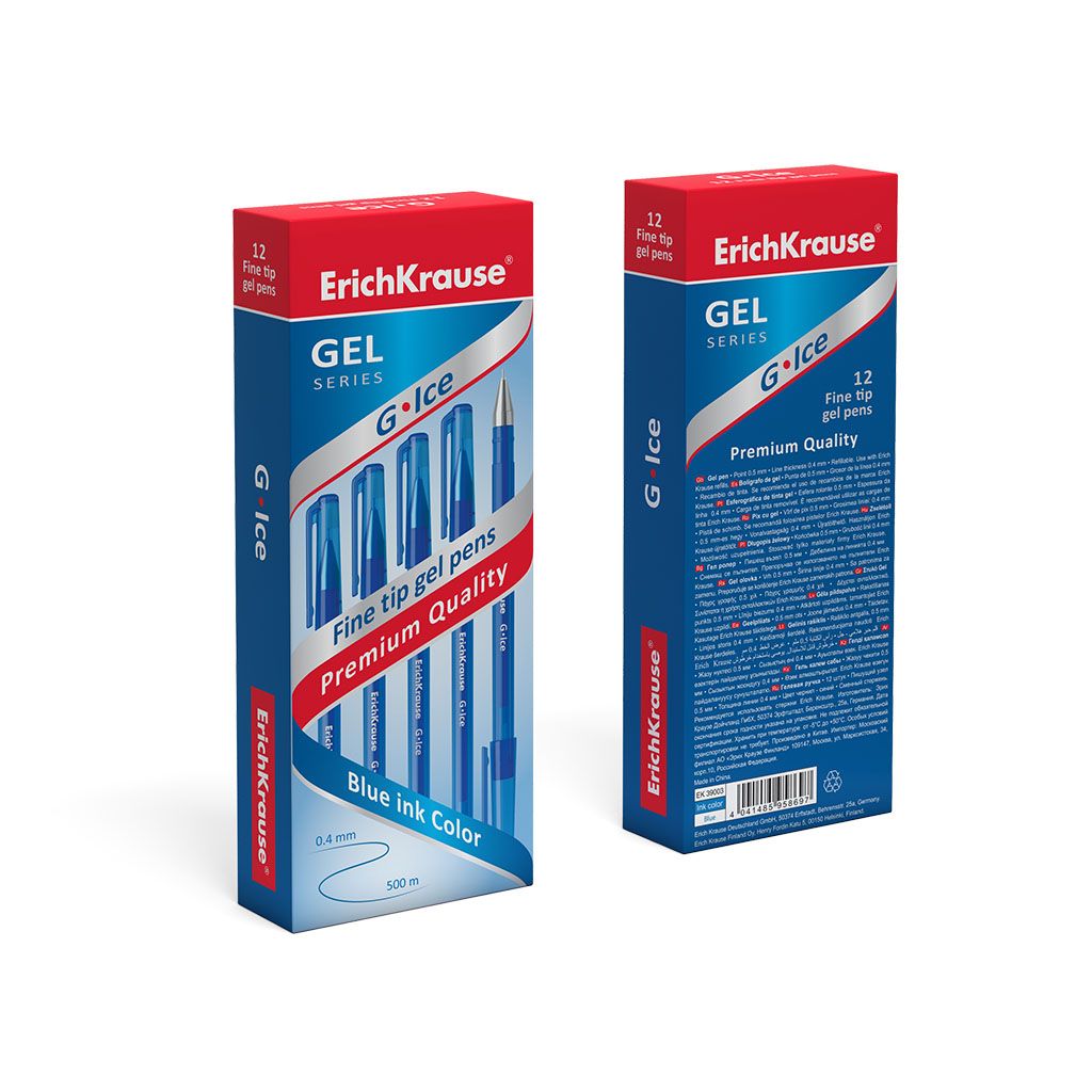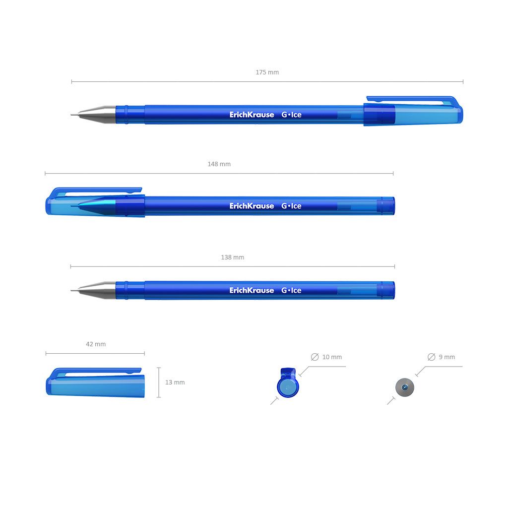 Диаметр, мм: 9 Цвет чернил: синий Вид товара: Ручка гелевая Толщина линии письма, мм: 0,40 Цвет корпуса: прозрачный Наличие резинового грипа: Нет Мин. партия и варианты упаковок: 1 / 12 / 144 / 1728 Ручка гелевая ErichKrause G-ICE 0,5 мм синяя, круглый корпус