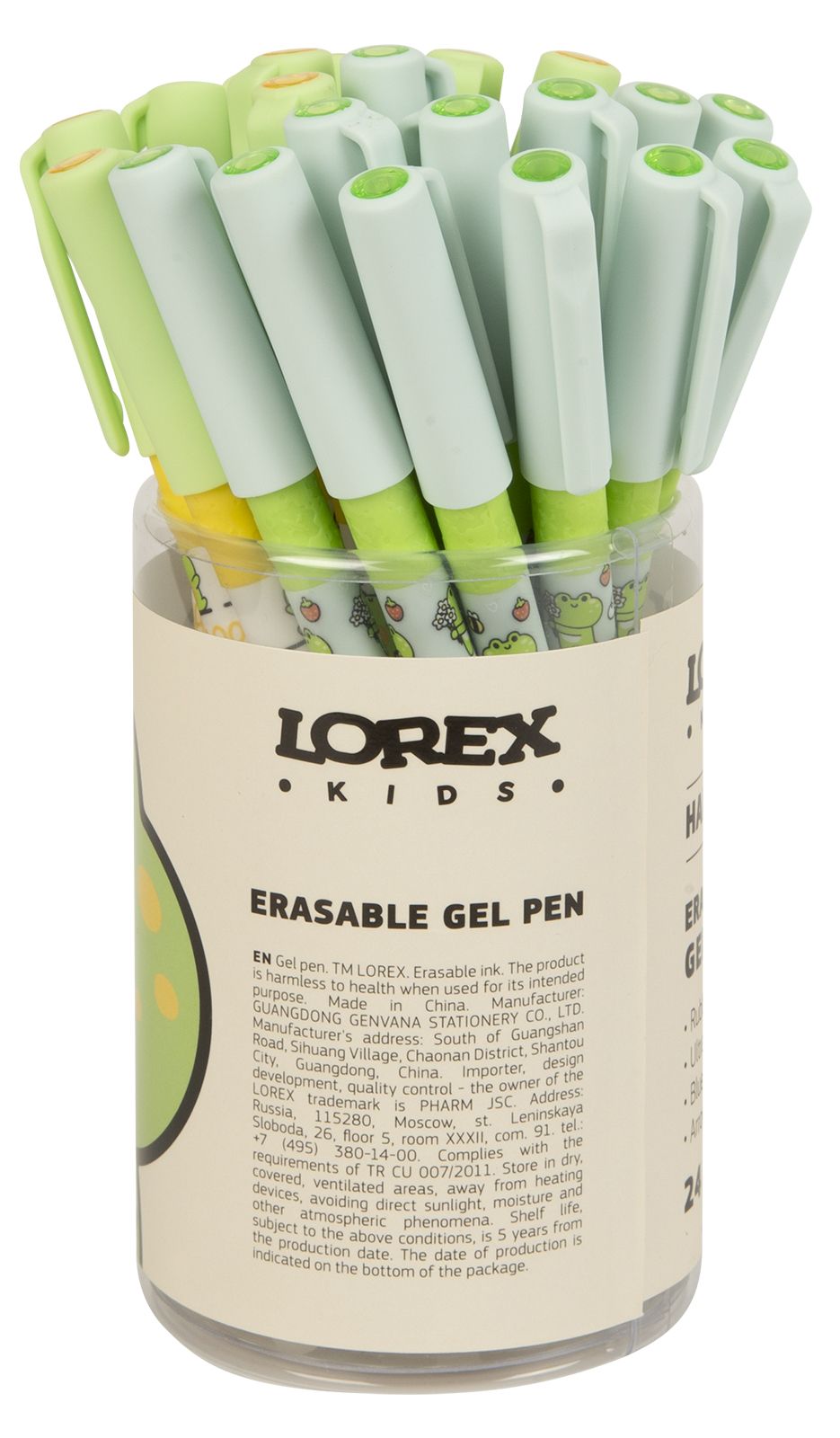 Количество в упаковке, шт: 1 Диаметр, мм: 7 Цвет чернил: синий Вид товара: Ручка гелевая стираемая Толщина линии письма, мм: 0,25 Цвет корпуса: ассорти Мин. партия и варианты упаковок: 1 / 24 / 288 / 1728 Ручка гелевая стираемая LOREX KIDS HAPPY FROG Slim Soft Grip 0,5 мм синяя, покрытие ultra-soft touch, грип