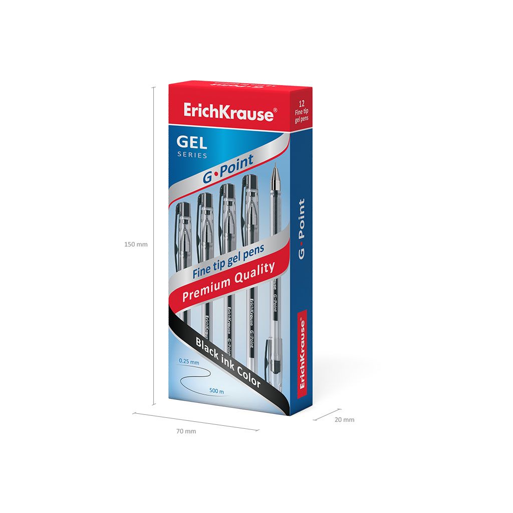 Диаметр, мм: 8 Цвет чернил: черный Вид товара: Ручка гелевая Толщина линии письма, мм: 0,25 Цвет корпуса: прозрачный Наличие резинового грипа: Нет Мин. партия и варианты упаковок: 1 / 12 / 144 / 1728 Ручка гелевая ErichKrause G-POINT 0,38 мм черная, круглый корпус