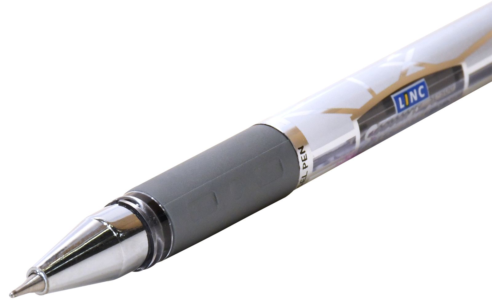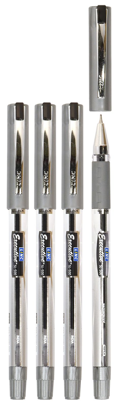 Диаметр, мм: 4 Цвет чернил: черный Вид товара: Ручка гелевая Толщина линии письма, мм: 0,30 Цвет корпуса: прозрачный Наличие резинового грипа: Да Мин. партия и варианты упаковок: 1 / 10 / 100 / 1200 Ручка гелевая Linc Executive SL 0,55 мм черная, круглый корпус, грип
