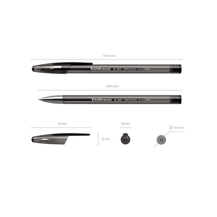 Диаметр, мм: 9 Цвет чернил: черный Вид товара: Ручка гелевая Толщина линии письма, мм: 0,40 Цвет корпуса: черный Наличие резинового грипа: Нет Мин. партия и варианты упаковок: 1 / 12 / 144 / 1728 Ручка гелевая ErichKrause Original Gel Stick R-301 0,5 мм черная, круглый корпус