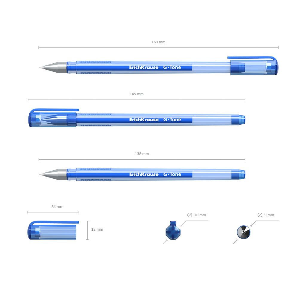 Диаметр, мм: 9 Цвет чернил: синий Вид товара: Ручка гелевая Толщина линии письма, мм: 0,40 Цвет корпуса: синий Наличие резинового грипа: Нет Мин. партия и варианты упаковок: 1 / 12 / 144 / 1728 Ручка гелевая ErichKrause G-TONE 0,5 мм синяя, круглый корпус