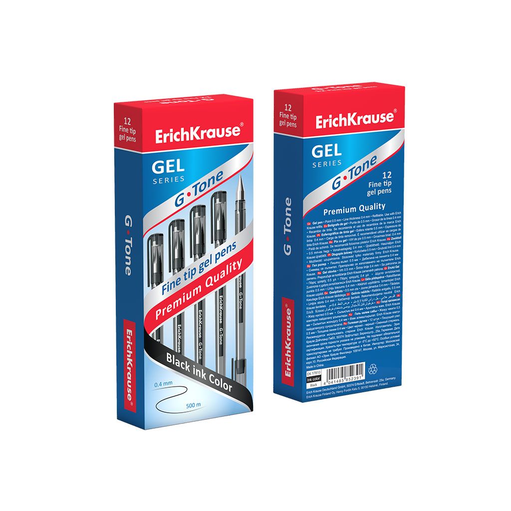Диаметр, мм: 9 Цвет чернил: черный Вид товара: Ручка гелевая Толщина линии письма, мм: 0,40 Цвет корпуса: черный Наличие резинового грипа: Нет Мин. партия и варианты упаковок: 1 / 12 / 144 / 1728 Ручка гелевая ErichKrause G-TONE 0,5 мм черная, круглый корпус
