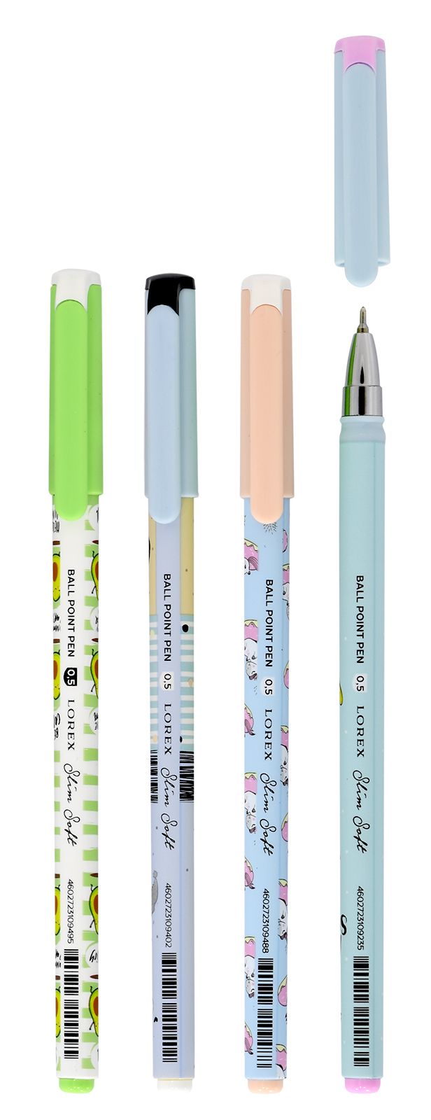 Количество в упаковке, шт: 4 Диаметр, мм: 7 Цвет чернил: синий Количество цветов: 1 Толщина линии письма, мм: 0,30 Цвет корпуса: дизайн Мин. партия и варианты упаковок: 1 / 36 / 432 Набор шариковых ручек LOREX ILLEGALLY CUTE. MIX SLIM SOFT синие, 1 цвет, 0,5 мм, 4 шт, круглый корпус, покрытие ultra-soft touch, игольчатый