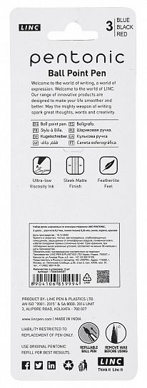 LINC PENTONIC — линия ручек нового поколения и одна из главных канцелярских сенсаций последних лет. Система комфортного письма Easy Flow Ink technology — cочетание антискользящей фактуры корпуса, специальной формулы чернил и конструкции пишущего узла — дает ультра мягкий и плавный ход письма. Минималистичный дизайн Black Сoncept всецело отражает дух нового времени — стремление к функциональной практичной эстетике.