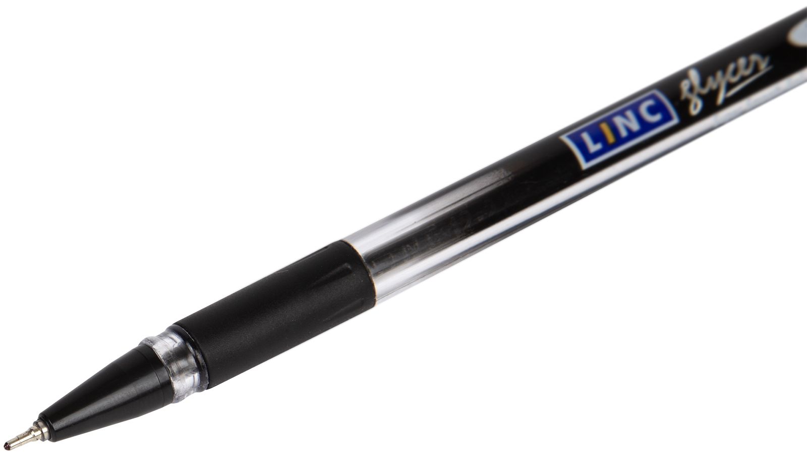 Цвет чернил: черный Толщина линии письма, мм: 0,35 Цвет корпуса: прозрачный Наличие резинового грипа: Да Упаковка: картонная коробка Профиль корпуса: круглый корпус Мин. партия и варианты упаковок: 1 / 12 / 72 / 1728 Ручка шариковая Linc Glycer черная 0,7 мм, прозрачный круглый корпус, грип, игольчатый наконечник