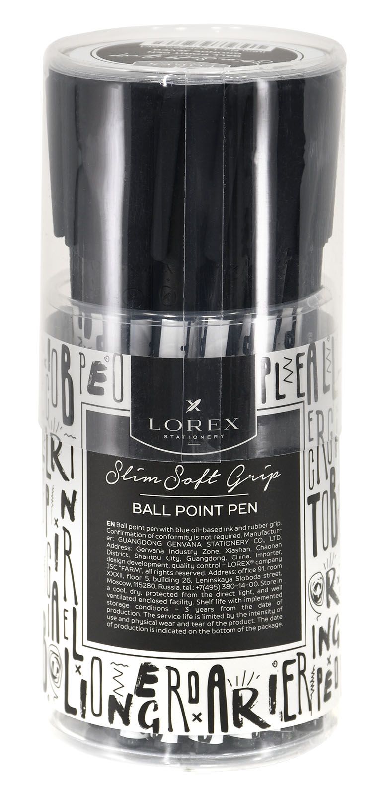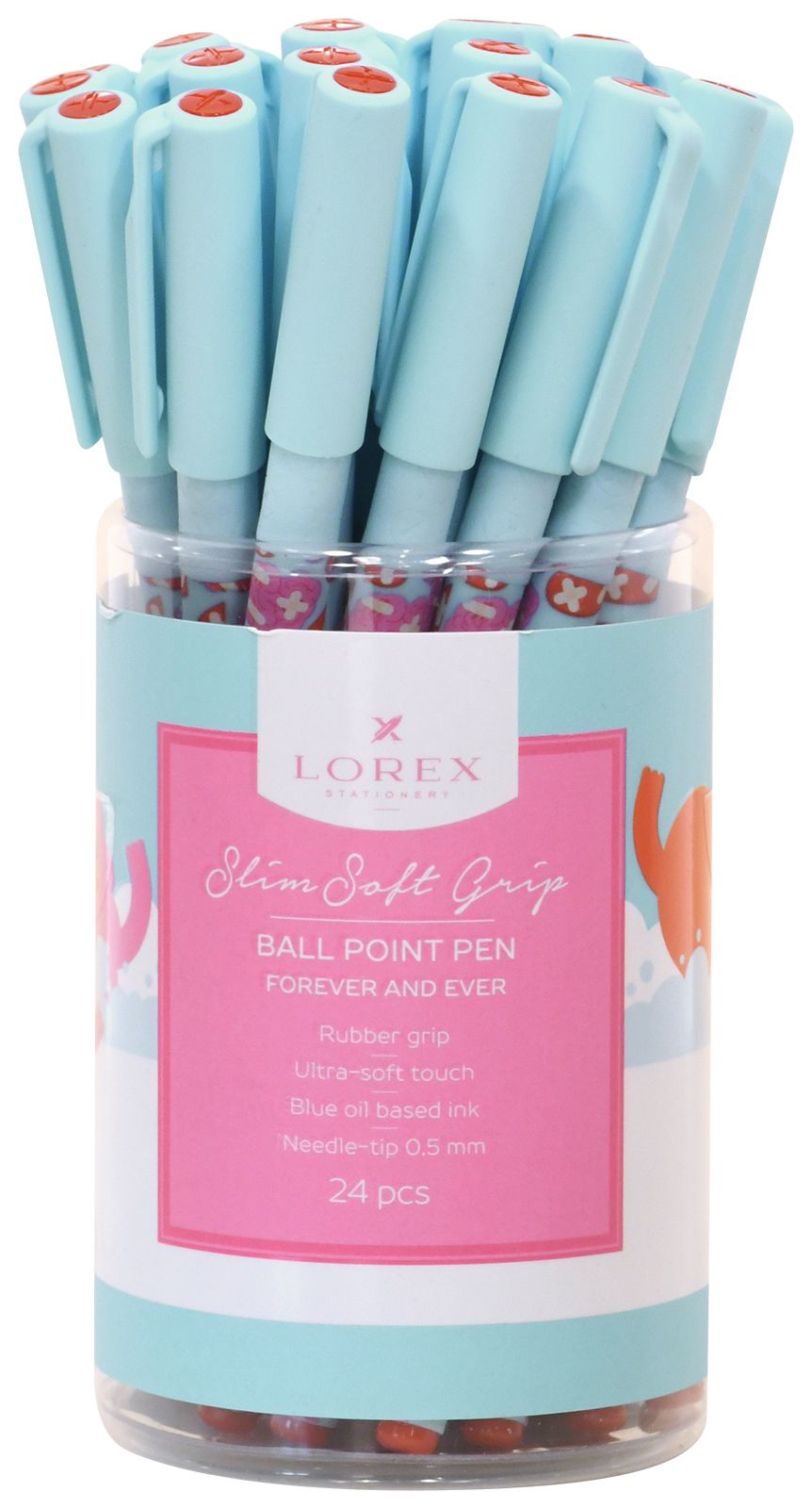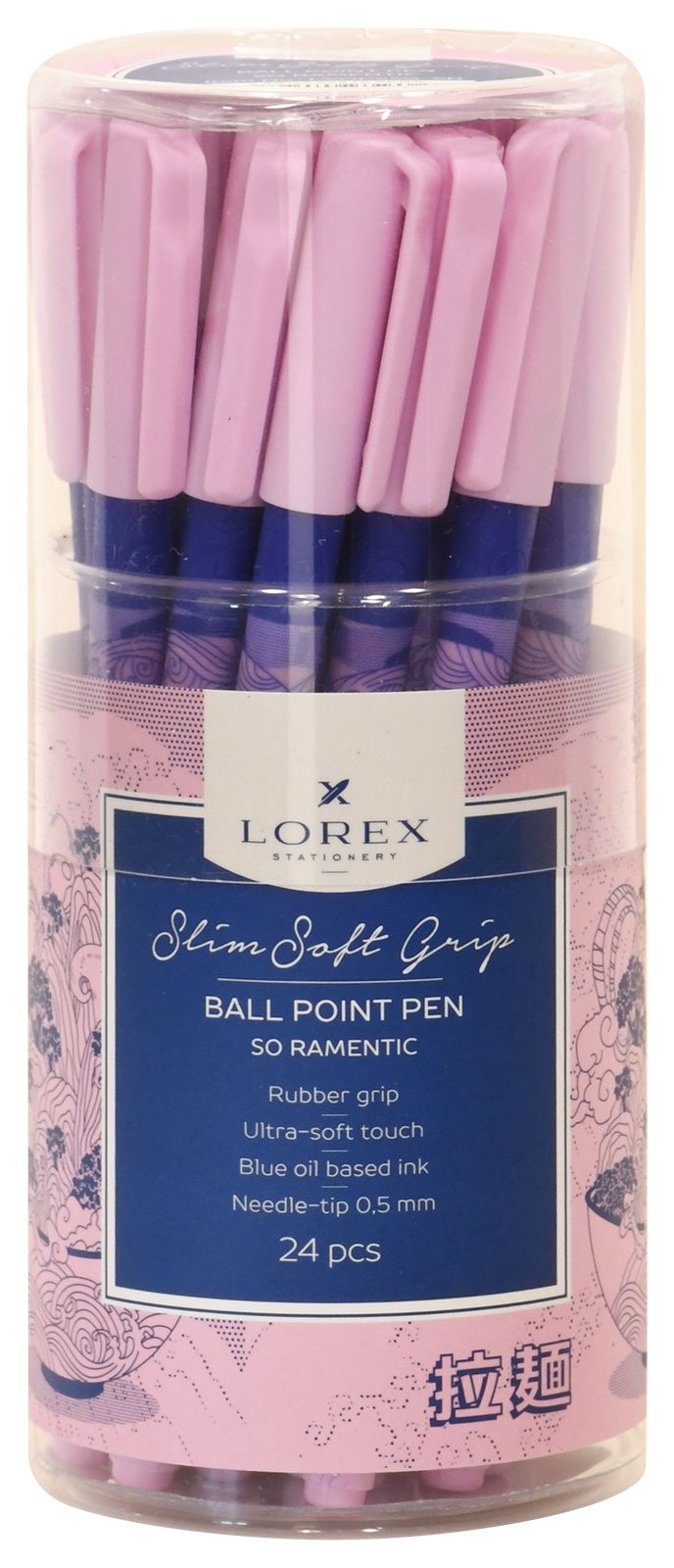 Цвет чернил: синий Толщина линии письма, мм: 0,25 Цвет корпуса: дизайн Наличие резинового грипа: Да Упаковка: тубус Профиль корпуса: круглый корпус Мин. партия и варианты упаковок: 1 / 24 / 288 / 1728 Ручка шариковая на масляной основе LOREX SO RAMENTIC Slim Soft Grip синяя 0,5 мм, с дизайном круглый корпус, покрытие ultra-soft touch, грип