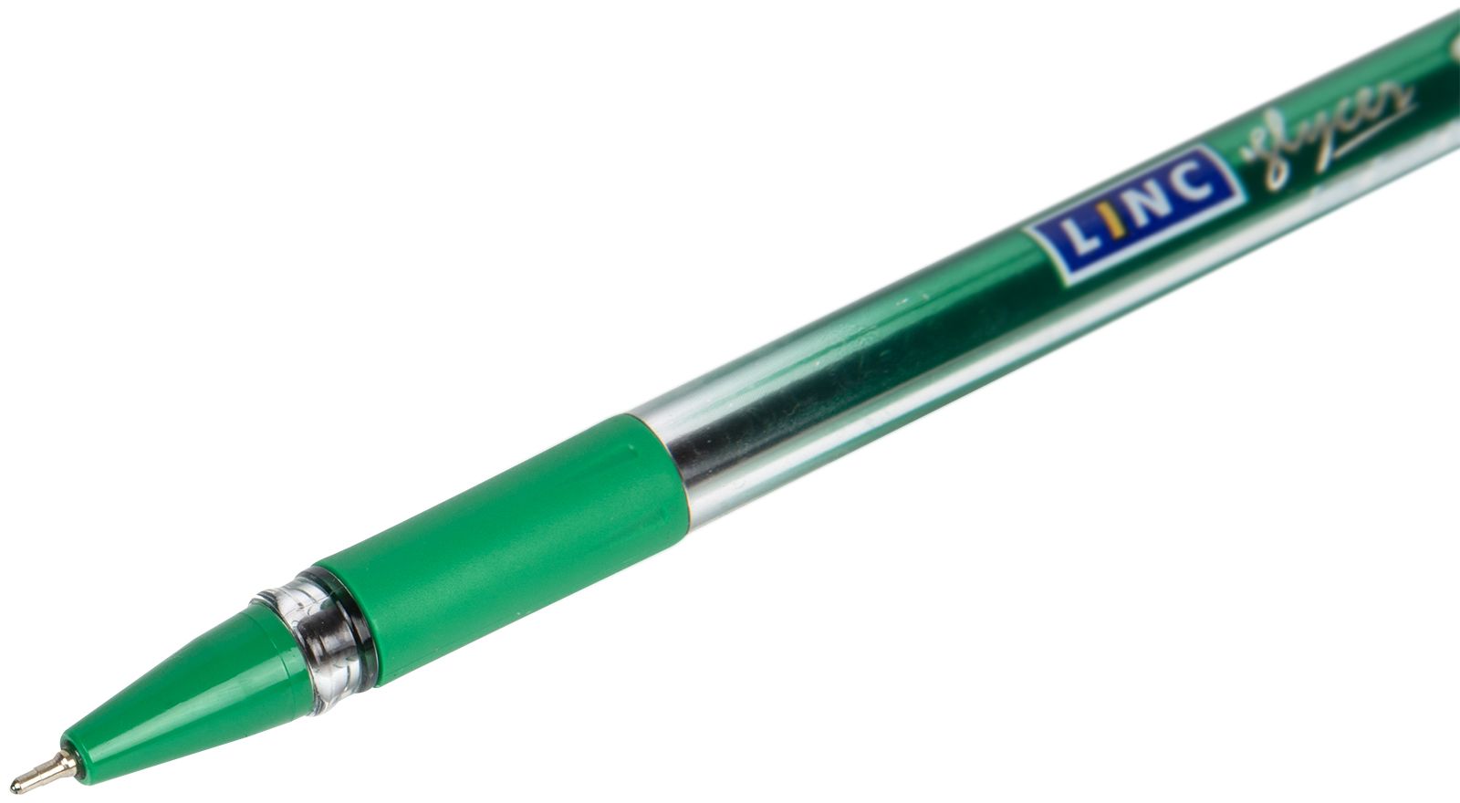 Цвет чернил: зеленый Толщина линии письма, мм: 0,35 Цвет корпуса: прозрачный Наличие резинового грипа: Да Упаковка: картонная коробка Профиль корпуса: круглый корпус Мин. партия и варианты упаковок: 1 / 12 / 72 / 1728 Ручка шариковая Linc Glycer зеленая 0,7 мм, прозрачный круглый корпус, грип, игольчатый наконечник
