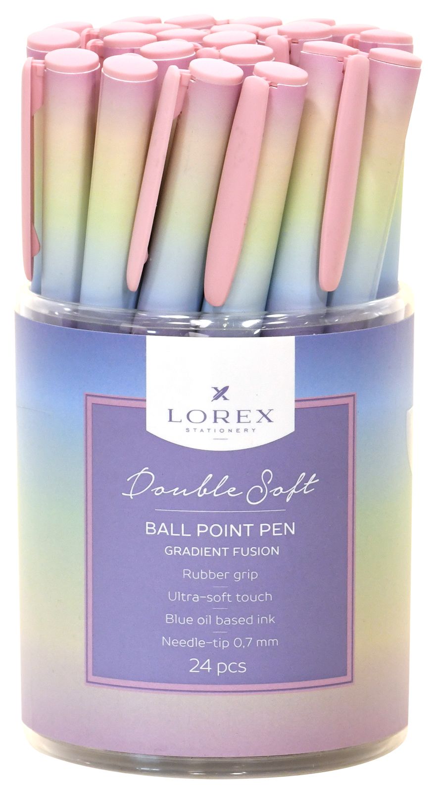 Цвет чернил: синий Толщина линии письма, мм: 0,35 Цвет корпуса: ассорти Наличие резинового грипа: Да Упаковка: тубус Профиль корпуса: круглый корпус Мин. партия и варианты упаковок: 1 / 24 / 288 / 1728 Ручка шариковая на масляной основе LOREX TAROT Double Soft синяя 0,7 мм, ассорти круглый корпус, ultra-soft touch, грип, игольчатый наконечн