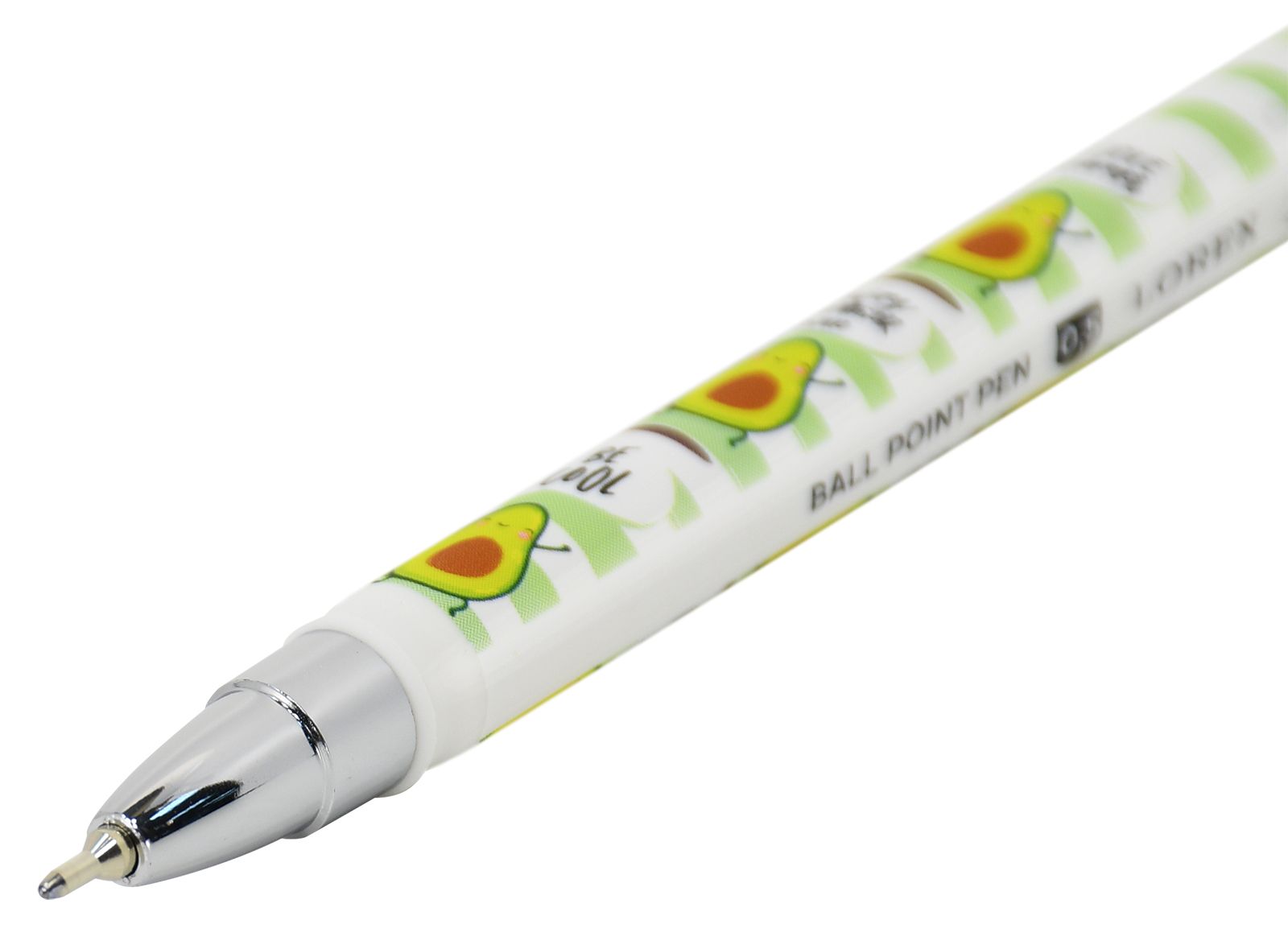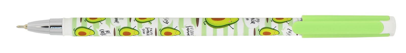 Цвет чернил: синий Толщина линии письма, мм: 0,25 Цвет корпуса: зеленый Наличие резинового грипа: Нет Упаковка: тубус Профиль корпуса: круглый корпус Мин. партия и варианты упаковок: 1 / 24 / 288 / 1728 Ручка шариковая на масляной основе LOREX FOOD ADDICTION.AVOCADO Slim Soft синяя 0,5 мм, бело-зеленый круглый корпус, покрытие ultra-soft touch