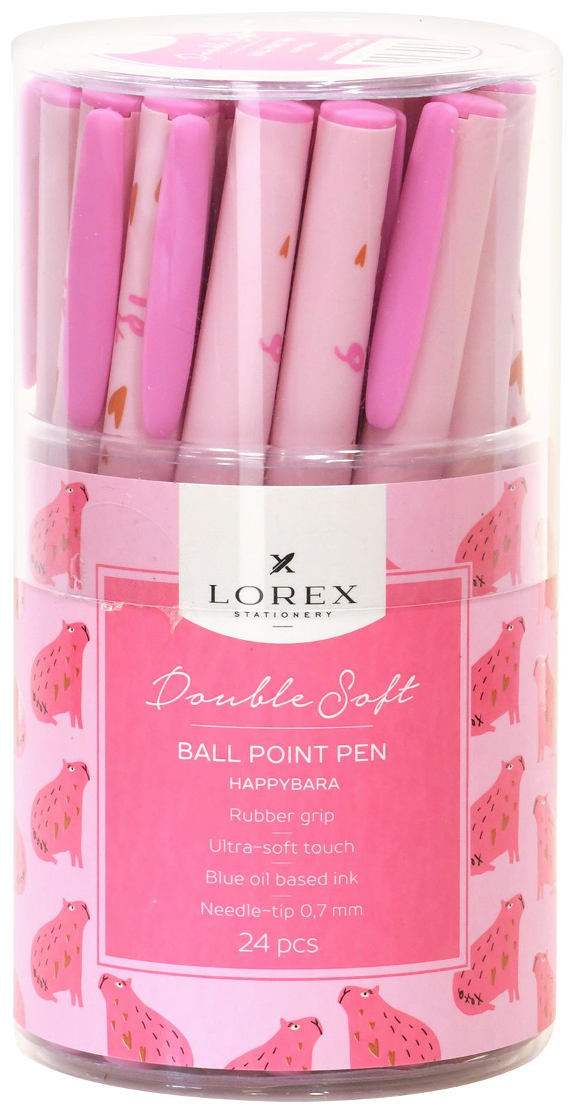 Цвет чернил: синий Толщина линии письма, мм: 0,35 Цвет корпуса: дизайн Наличие резинового грипа: Да Упаковка: тубус Профиль корпуса: круглый корпус Мин. партия и варианты упаковок: 1 / 24 / 288 / 1728 Ручка шариковая на масляной основе LOREX HAPPYBARA Double Soft синяя 0,7 мм, с дизайном круглый корпус, покрытие ultra-soft touch, грип, иго
