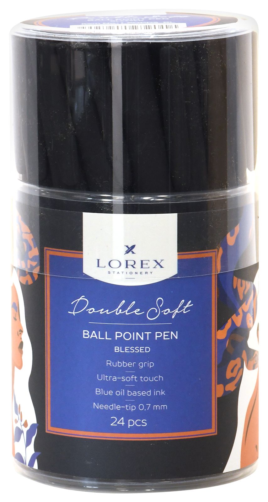 Цвет чернил: синий Толщина линии письма, мм: 0,35 Цвет корпуса: дизайн Наличие резинового грипа: Да Упаковка: тубус Профиль корпуса: круглый корпус Мин. партия и варианты упаковок: 1 / 24 / 288 / 1728 Ручка шариковая на масляной основе LOREX BLESSED Double Soft синяя 0,7 мм, с дизайном круглый корпус, покрытие ultra-soft touch, грип, иголь