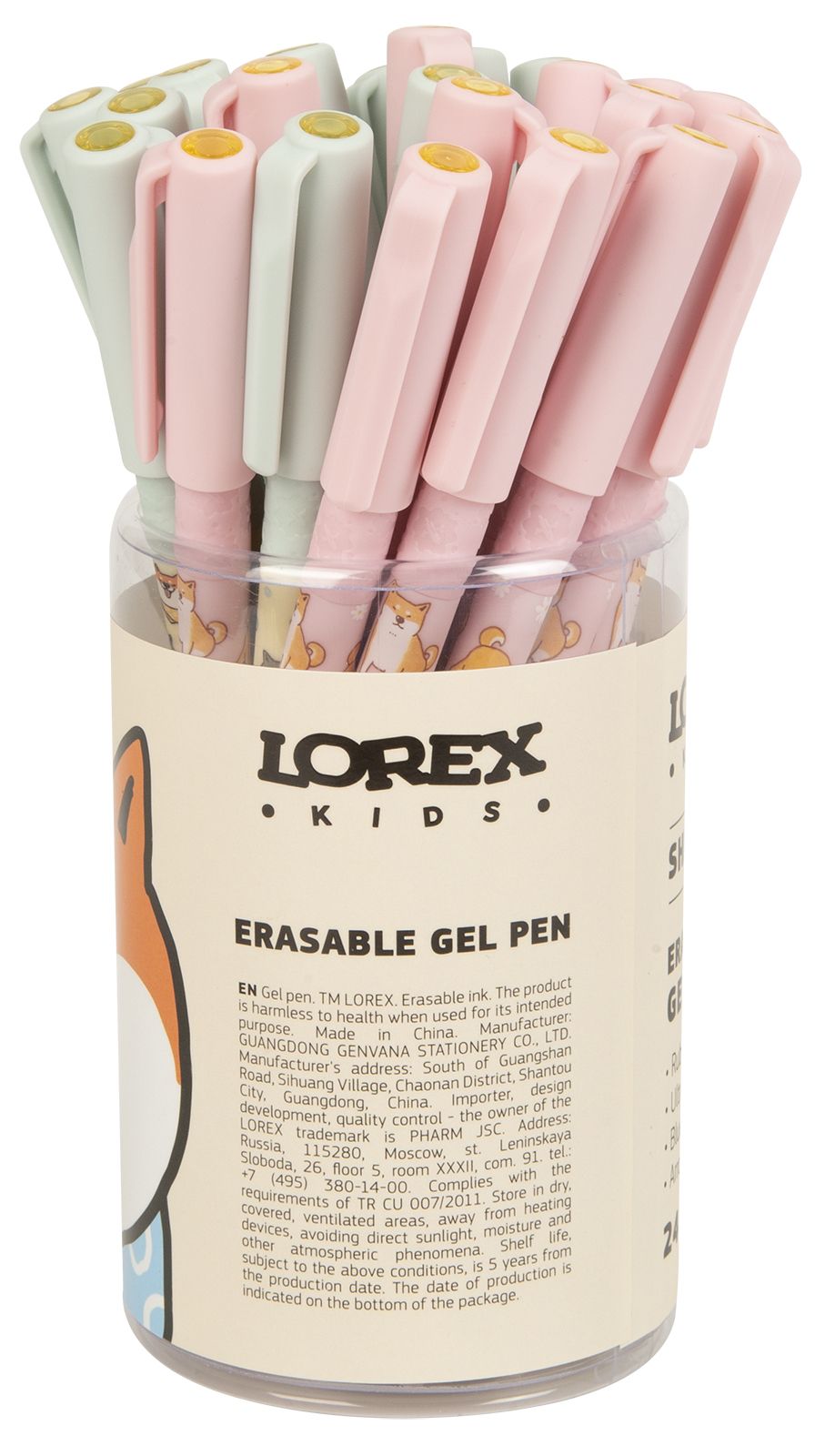 Количество в упаковке, шт: 1 Диаметр, мм: 7 Цвет чернил: синий Вид товара: Ручка гелевая стираемая Толщина линии письма, мм: 0,25 Цвет корпуса: ассорти Мин. партия и варианты упаковок: 1 / 24 / 288 / 1728 Ручка гелевая стираемая LOREX KIDS SHIBA BAND Slim Soft Grip 0,5 мм синяя, покрытие ultra-soft touch, грип