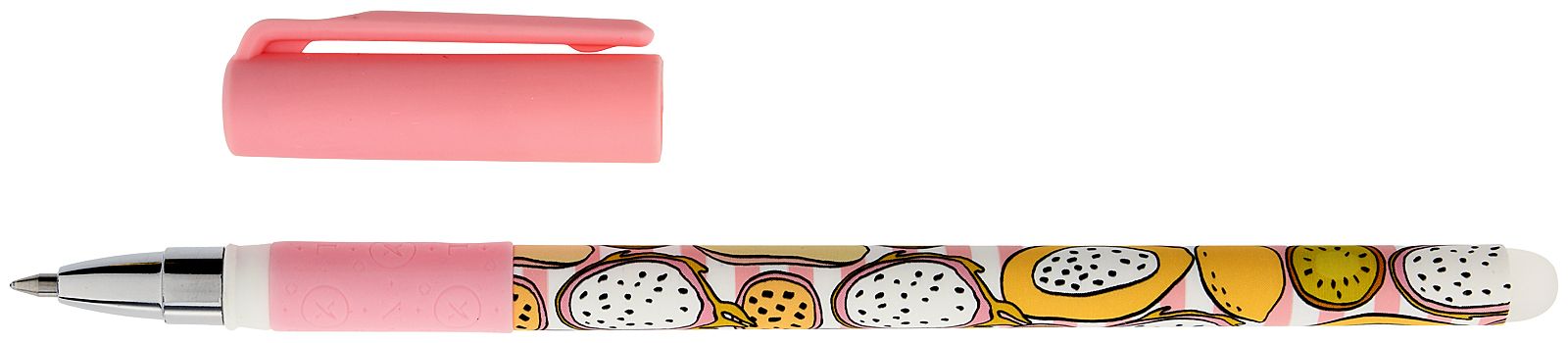 Количество в упаковке, шт: 1 Диаметр, мм: 7 Цвет чернил: синий Вид товара: Ручка гелевая стираемая Толщина линии письма, мм: 0,35 Цвет корпуса: ассорти Мин. партия и варианты упаковок: 1 / 24 / 288 / 1728 Ручка гелевая стираемая LOREX DRAGON FRUIT Slim Soft Grip 0,5 мм синяя, покрытие ultra-soft touch, грип