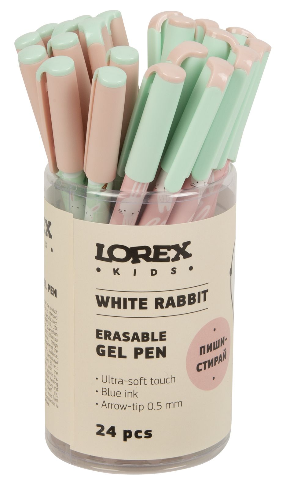 Количество в упаковке, шт: 1 Диаметр, мм: 7 Цвет чернил: синий Вид товара: Ручка гелевая стираемая Толщина линии письма, мм: 0,25 Цвет корпуса: ассорти Мин. партия и варианты упаковок: 1 / 24 / 288 / 1728 Ручка гелевая стираемая LOREX KIDS WHITE RABBIT Slim Soft 0,5 мм синяя, покрытие ultra-soft touch