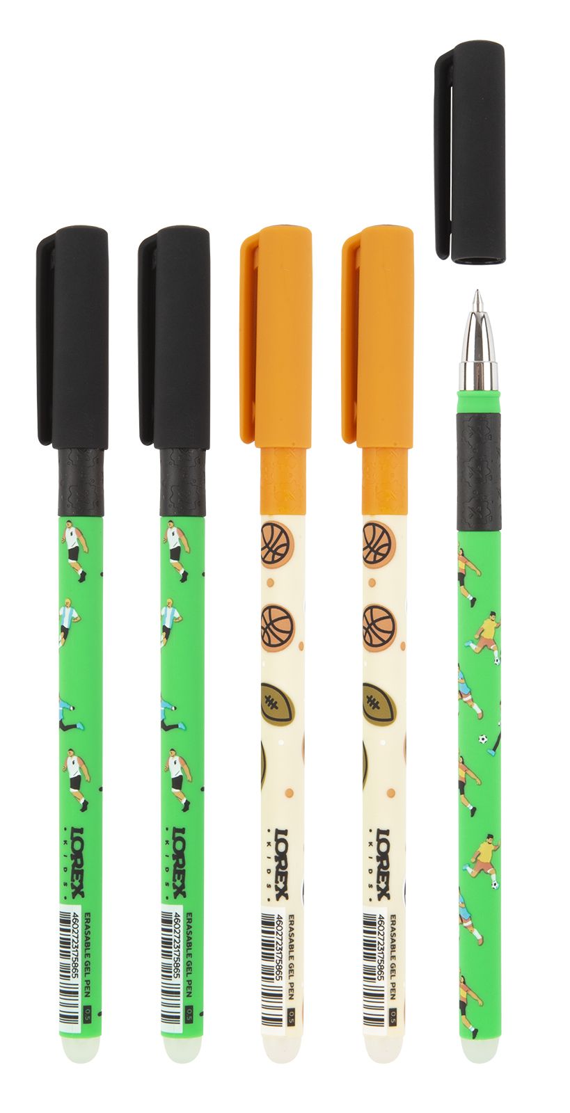 Количество в упаковке, шт: 1 Диаметр, мм: 7 Цвет чернил: синий Вид товара: Ручка гелевая стираемая Толщина линии письма, мм: 0,25 Цвет корпуса: ассорти Мин. партия и варианты упаковок: 1 / 24 / 288 / 1728 Ручка гелевая стираемая LOREX KIDS PLAY FOOTBALL Slim Soft Grip 0,5 мм синяя, покрытие ultra-soft touch, грип