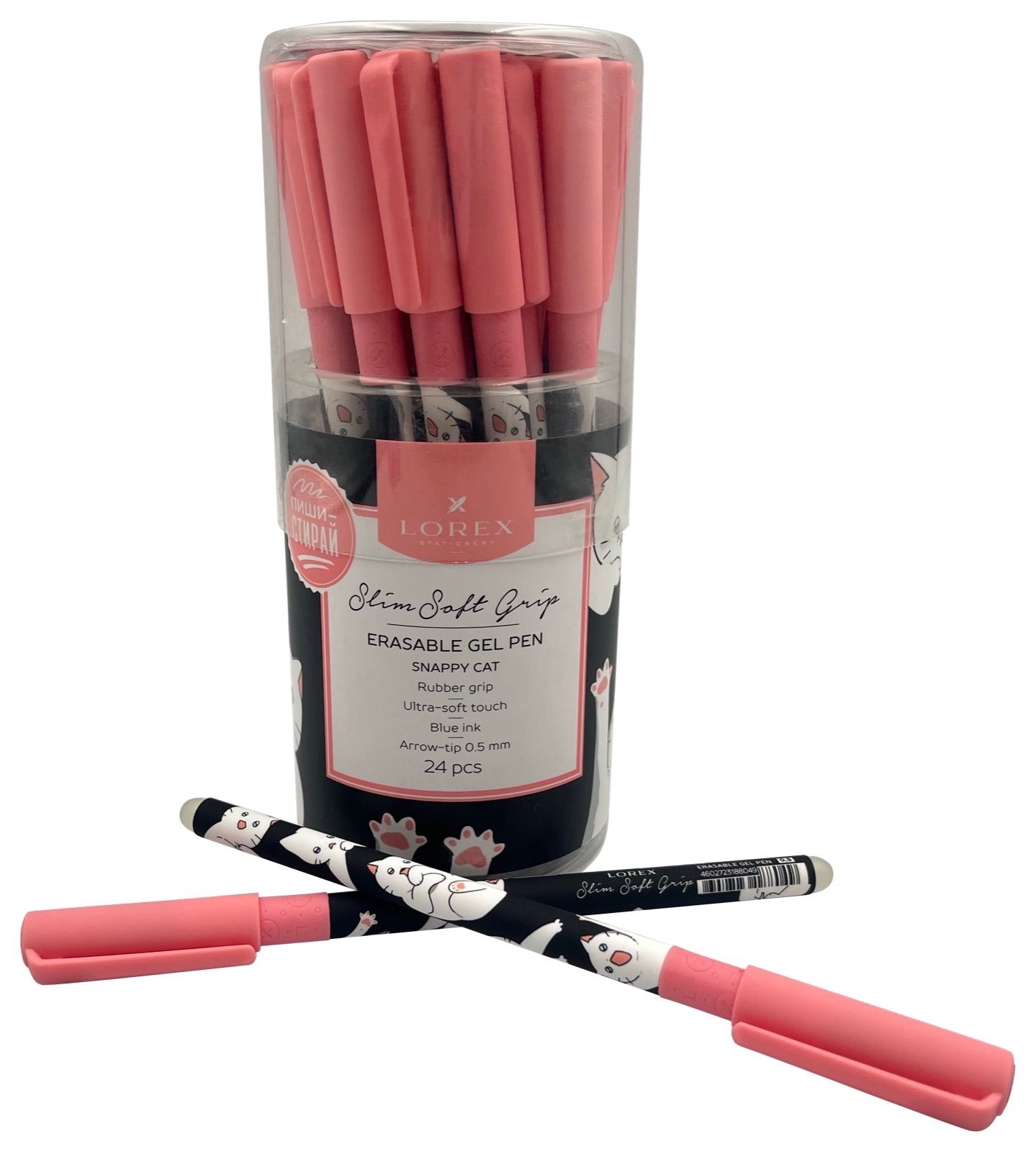 Ручки LOREX со стираемыми чернилами серии Slim Soft Grip — это тонкий элегантный корпус изготовленный по технологии Ultra-soft touch с фирменным резиновым грипом в зоне захвата. Мягкий на ощупь корпус дарит приятные ощущения, а милый дизайн с котиком задаст веселое настроение.