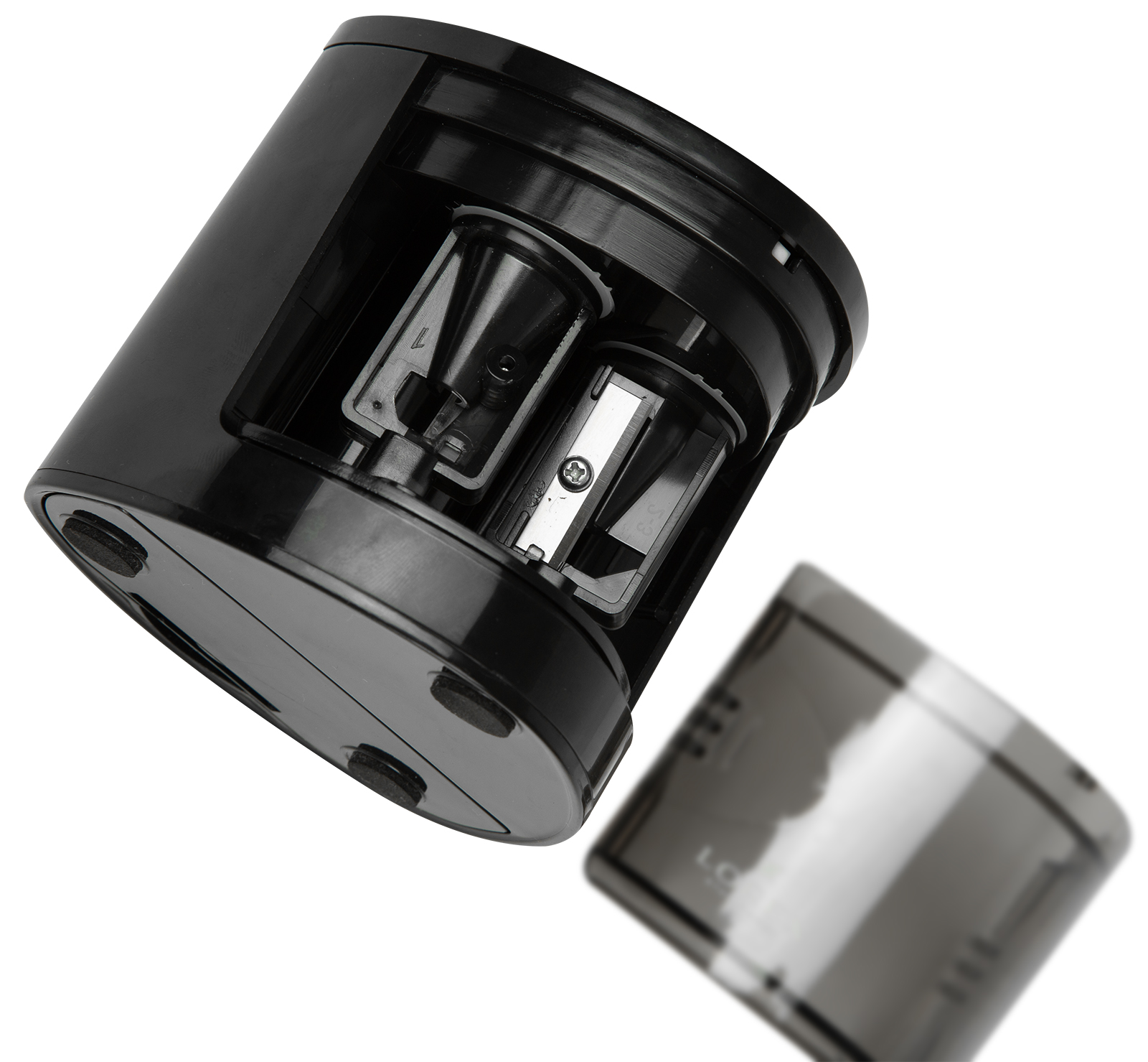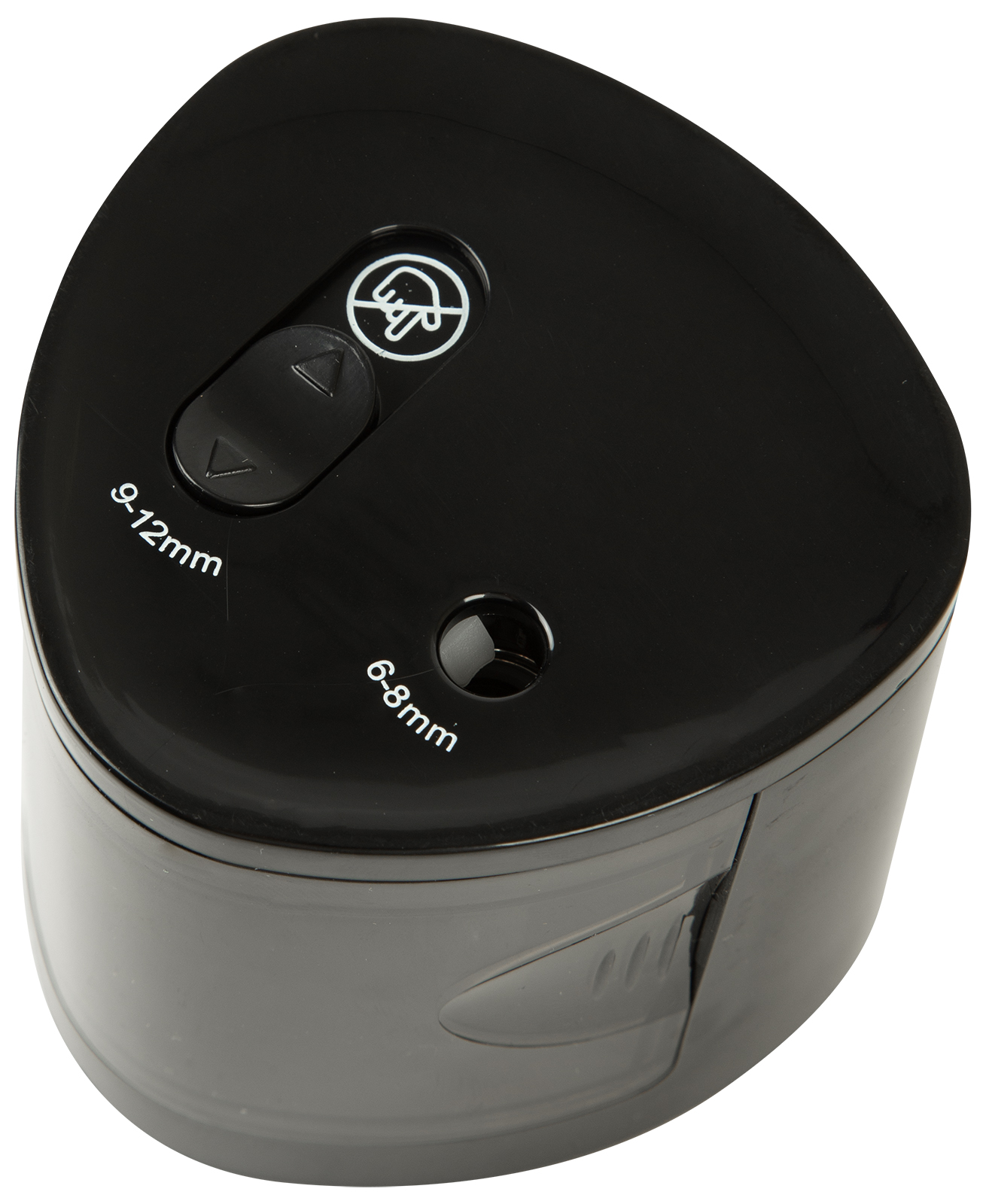 Цвет: черный Комплектация: с контейнером Вид точилки: электрическая Количество отверстий для заточки: 2 отверстия Серия: TOTAL BLACK Материал механизма: металл Мин. партия и варианты упаковок: 1 / 12 / 72 -