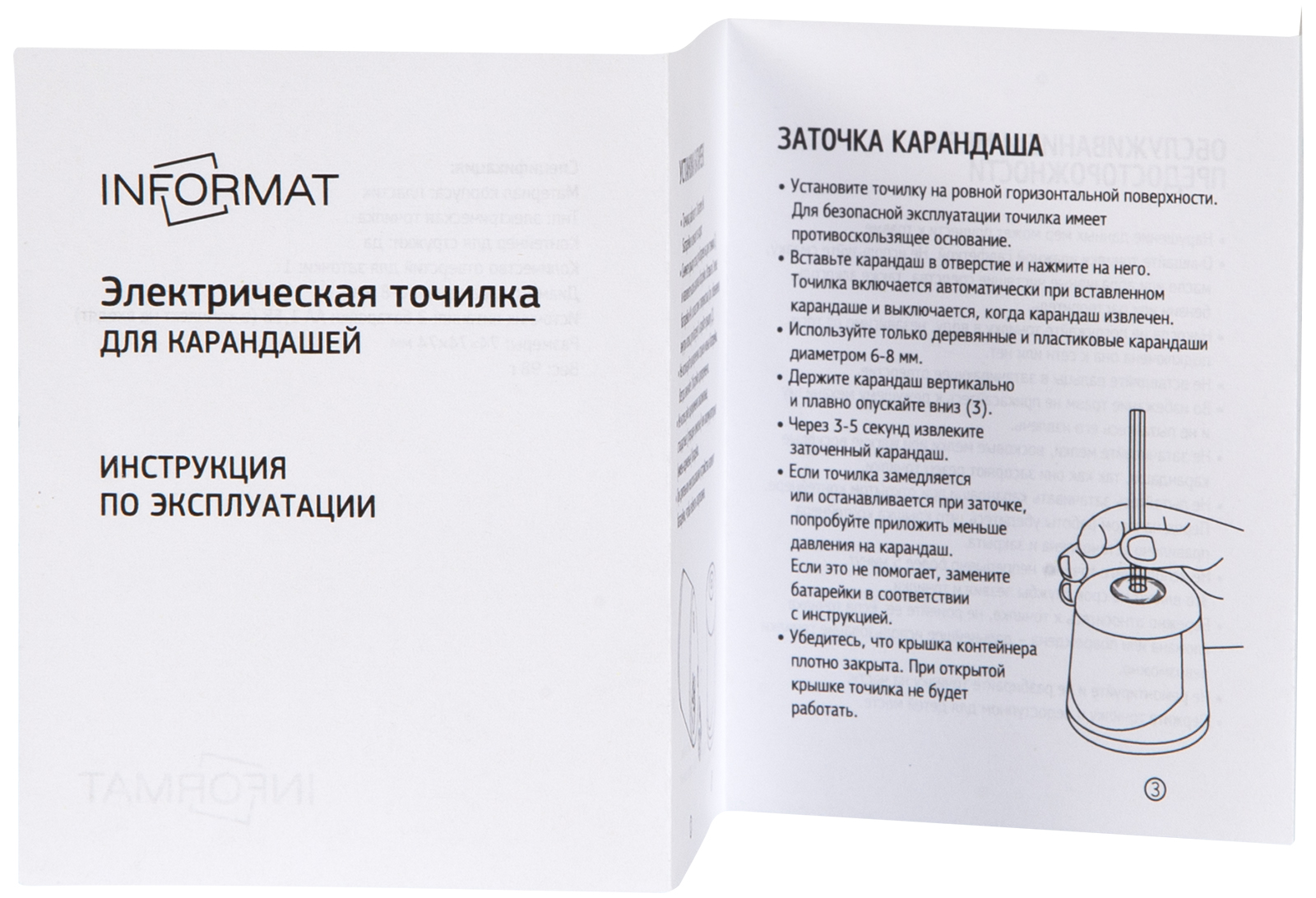 Цвет: серый Комплектация: со съемным контейнером Вид точилки: электрическая Количество отверстий для заточки: 1 отверстие Материал механизма: металл; пластик Материал корпуса: пластик Мин. партия и варианты упаковок: 1 / 12 / 48 -