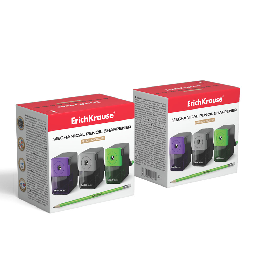 Цвет: ассорти Комплектация: со съемным контейнером Вид точилки: механическая Количество отверстий для заточки: 1 отверстие Материал механизма: металл Материал корпуса: пластик Мин. партия и варианты упаковок: 1 / 12 / 36 -