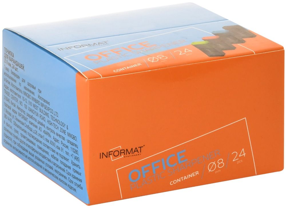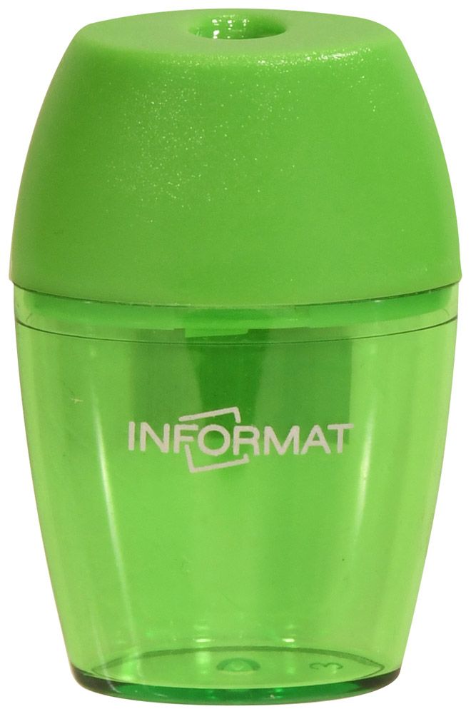Цвет: ассорти Упаковка: дисплей Комплектация: с контейнером Наличие индивидуального штрих-кода: Да Форма: прямоугольная Количество отверстий для заточки: 1 отверстие Мин. партия и варианты упаковок: 1 / 24 / 720 Точилка INFORMAT OFFICE с контейнером, ассорти, корпус пластик, 1 отверстие, в дисплее