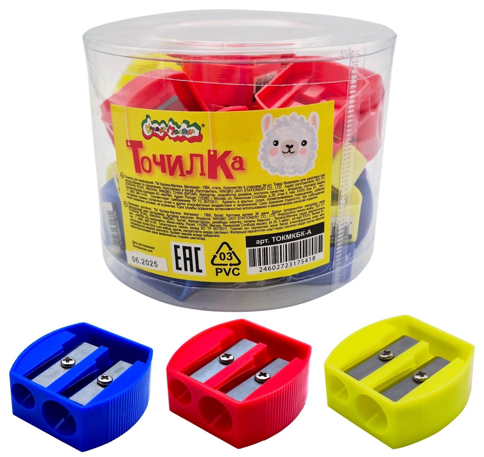 Точилки Каляка-Маляка станут незаменимым помощником ребенка в учебе и творчестве. Точилки имеют острые лезвия из нержавеющей стали, корпус из прочного пластика и два отверстия для карандашей стандартного и утолщенного размера. Компактный размер точилки поможет хранить её в пенале.