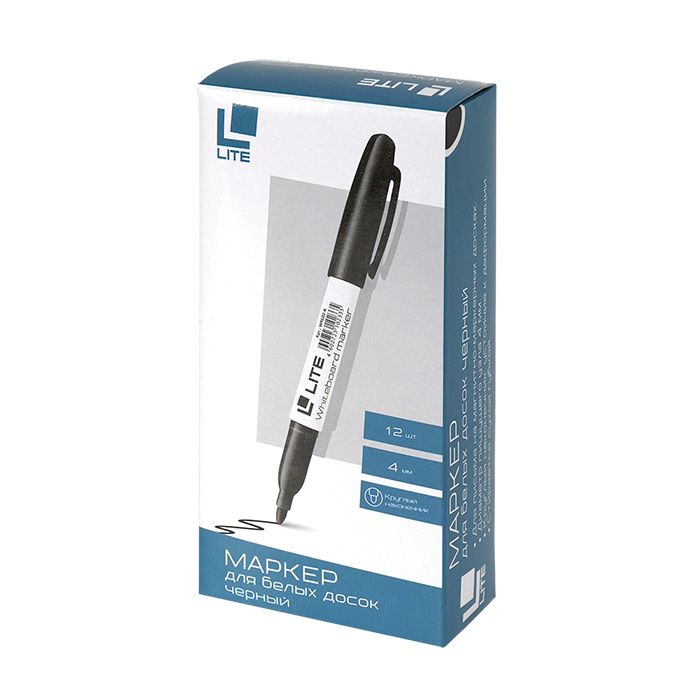 Цвет: черный Количество в упаковке, шт: 1 Тип чернил: быстросохнущий Форма наконечника: круглый Вид маркера: Маркер для досок Количество пишущих сторон: односторонний Мин. партия и варианты упаковок: 1 / 12 / 144 / 864 Маркер для белых досок LITE 4 мм черный, круглый наконечник