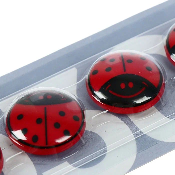 Цвет: красный Диаметр, мм: 30 Материал: пластик Упаковка: блистер с европодвесом Количество штук в упаковке: 5 Наличие принта: Да Мин. партия и варианты упаковок: 1 / 50 Магниты для досок Глобус Божья коровка 30 мм красные, 5шт/упак
