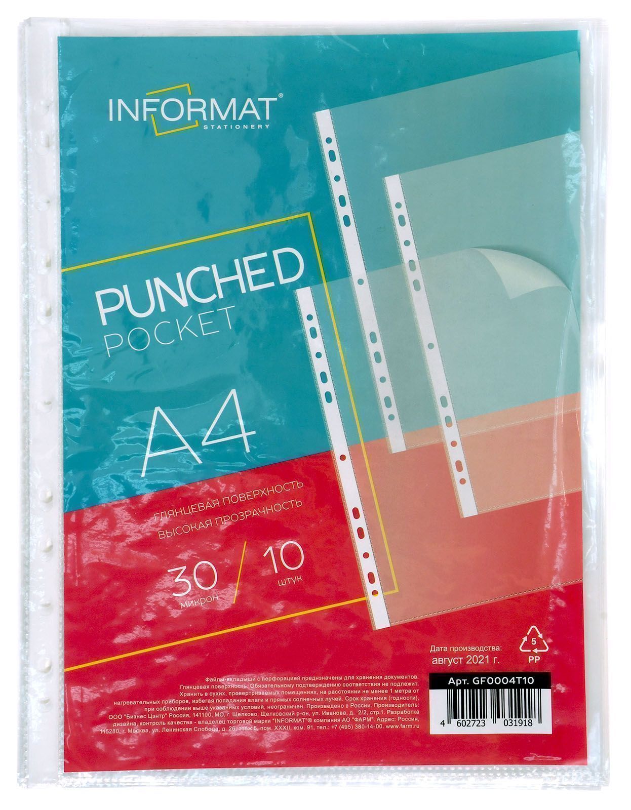 Файлы-вкладыши формата А4 из гладкой полипропиленовой пленки толщиной 30 мкм. Предназначены для хранения и защиты документов. Каждый файл-вкладыш вмещает около 40 листов бумаги стандартной плотности. Боковая универсальная перфорация подходит для разных типов скоросшивателей.